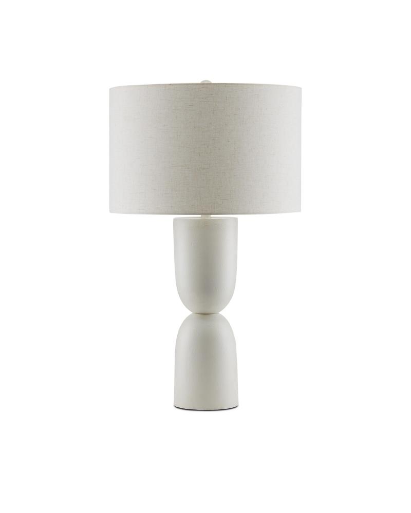 With a pared-down design that leaves only the leanest of elements, the Linz Table Lamp is a contemporary manifestation of style. Made of cast aluminum in a white finish, the lamp's smooth body has a very subtle pitting that complements the texture in the nubby linen shade. The white table lamp with its conjoined sections that narrow where they meet will also be stunning in mid-century modern interiors.