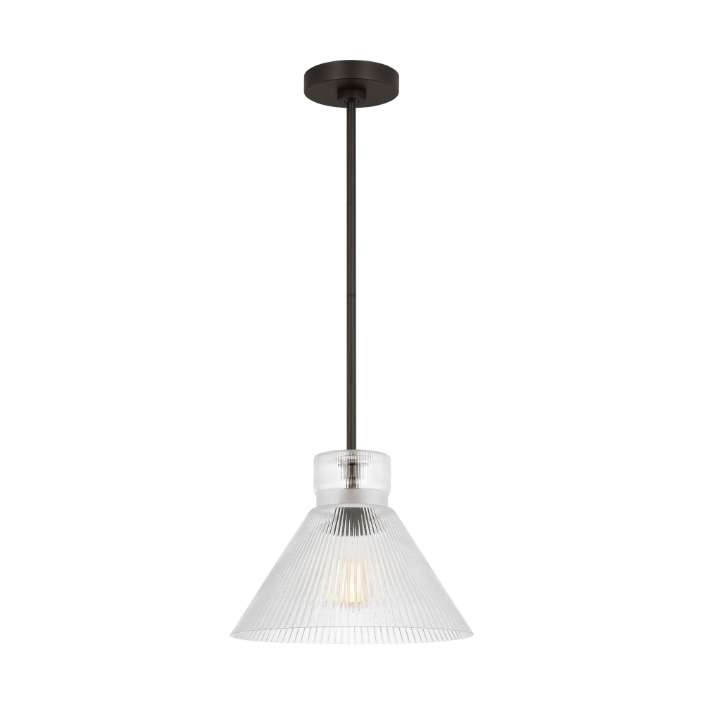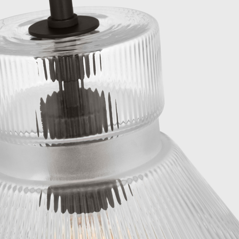 Crafted with Steel in a Midnight Black finish with clear ribbed glass shade
