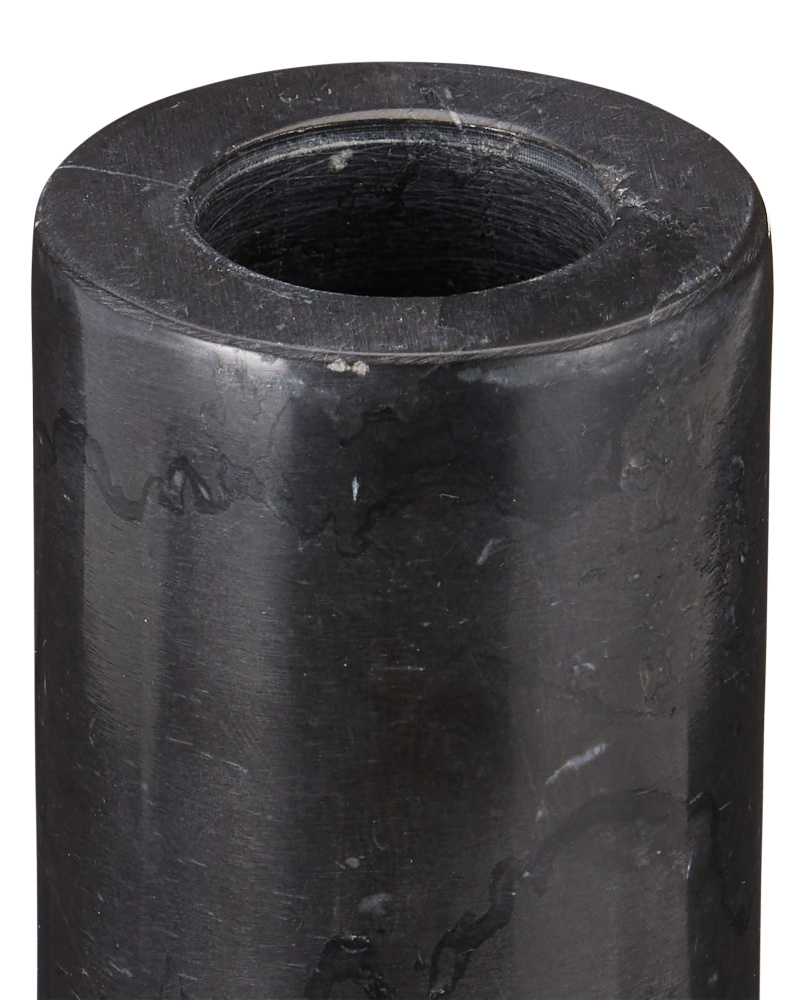 The Lithos Black Candle Holder Set includes two candle holders made of black marquina marble. The geometric shapes that comprise its profile are enlivened by the natural veining of the stone, making each one unique. The characteristics of this stone bring a deep black and crisp white interplay to their surfaces.