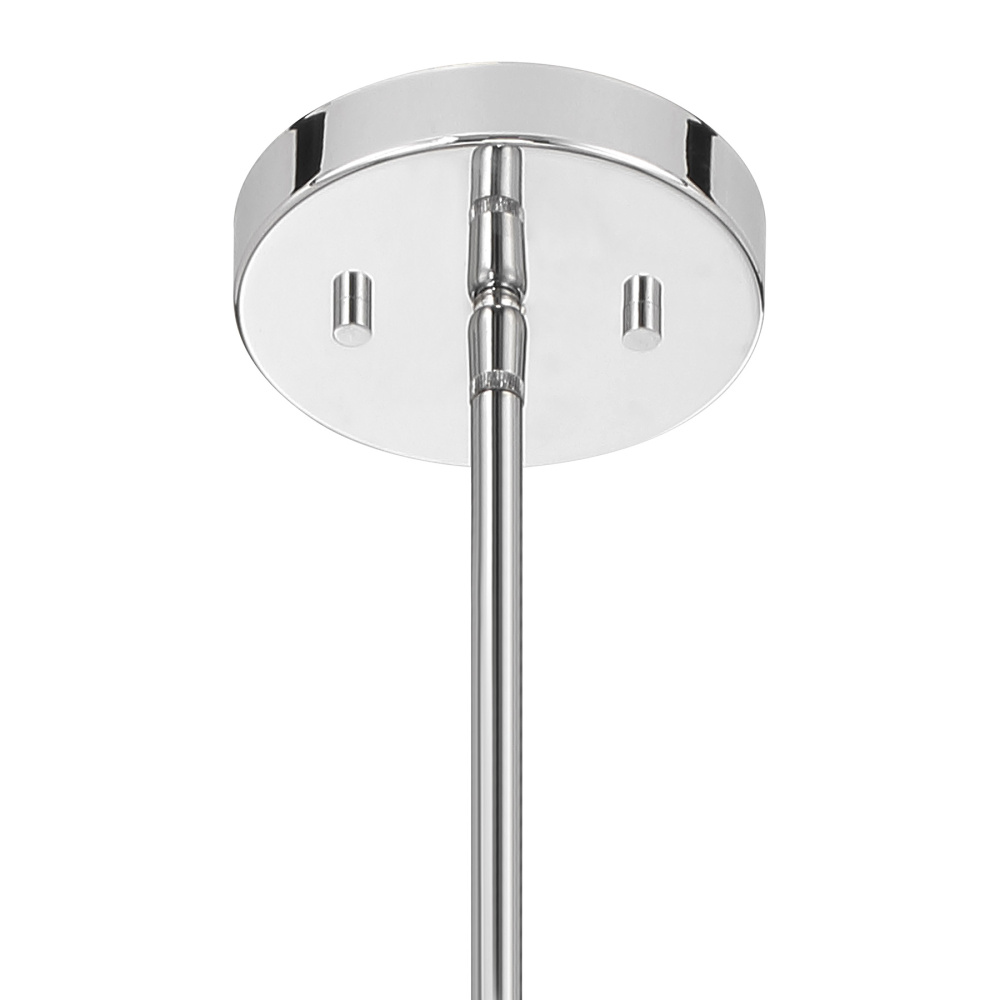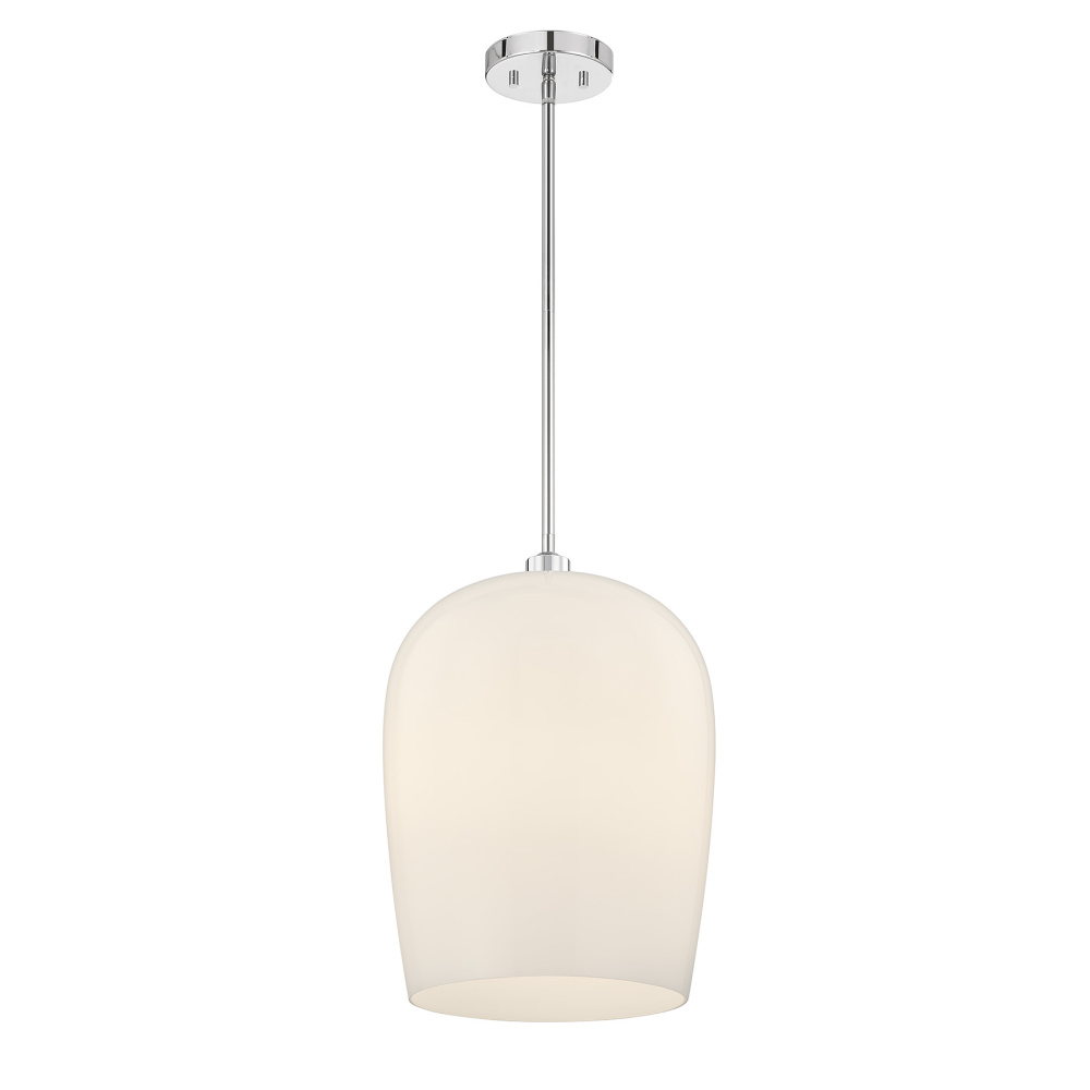A generously sized shade of opal glass takes center stage in the Savoy House Livingston 1-light pendant while a gleaming Chrome finish adds a luminous, upscale touch. Whether used solo or in groupings, this pendant is sure to please. Livingston is 16" in width and has an adjustable height ranging from 22.8" to 76.8". It uses one standard size bulb of up to 60 watts. Bulb not included. Comes with four 12" downrods and one 6" downrod.