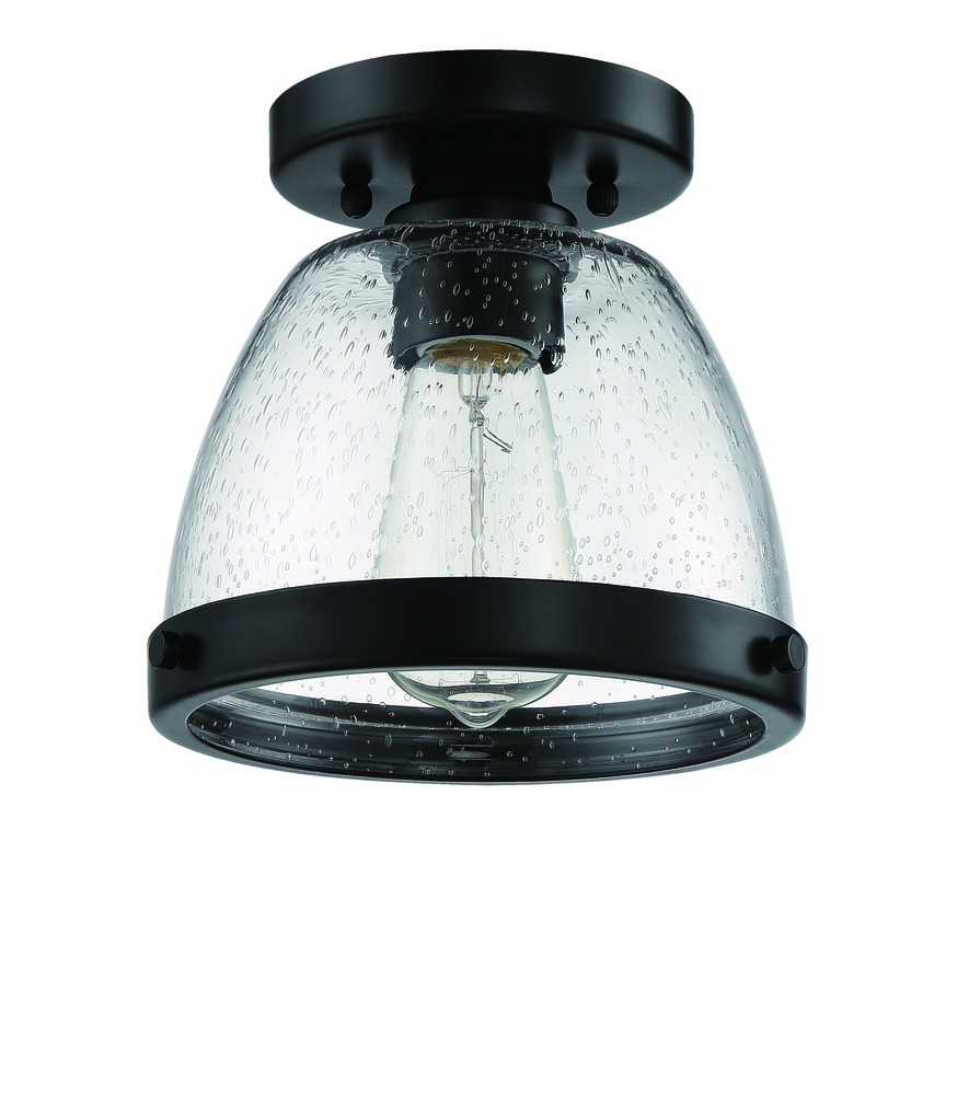 Light illuminates the clear seeded glass shade of these flushmounts from our Lodie Collection by Craftmade. Featuring two sizes offered in three finishes, the Lodie Flushmount Collection offers the clean transitional