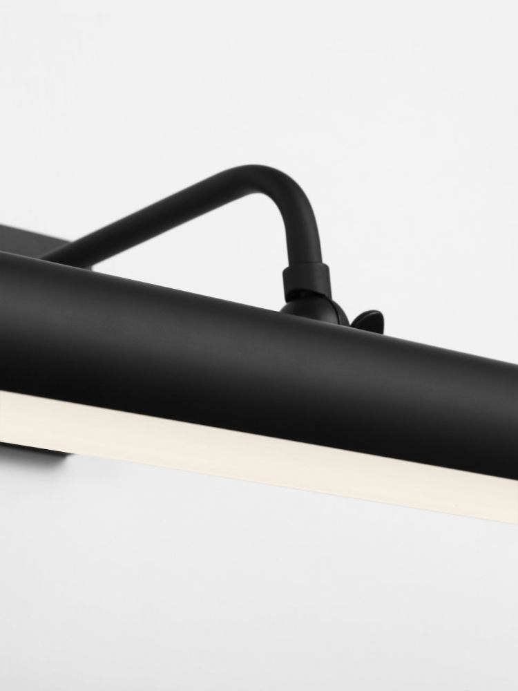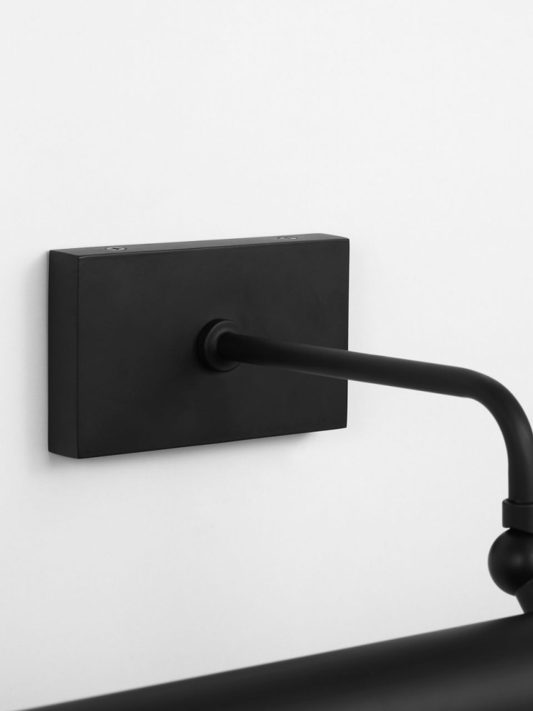 An Dedicated LED picture light with refined style, Loxen features a slender tube accented by a square backplate. A gracefully curved arm support the light while a simple round finial adds a finishing touch. A sophisticated means of illuminating wall decor, Loxen is available in three finishes.