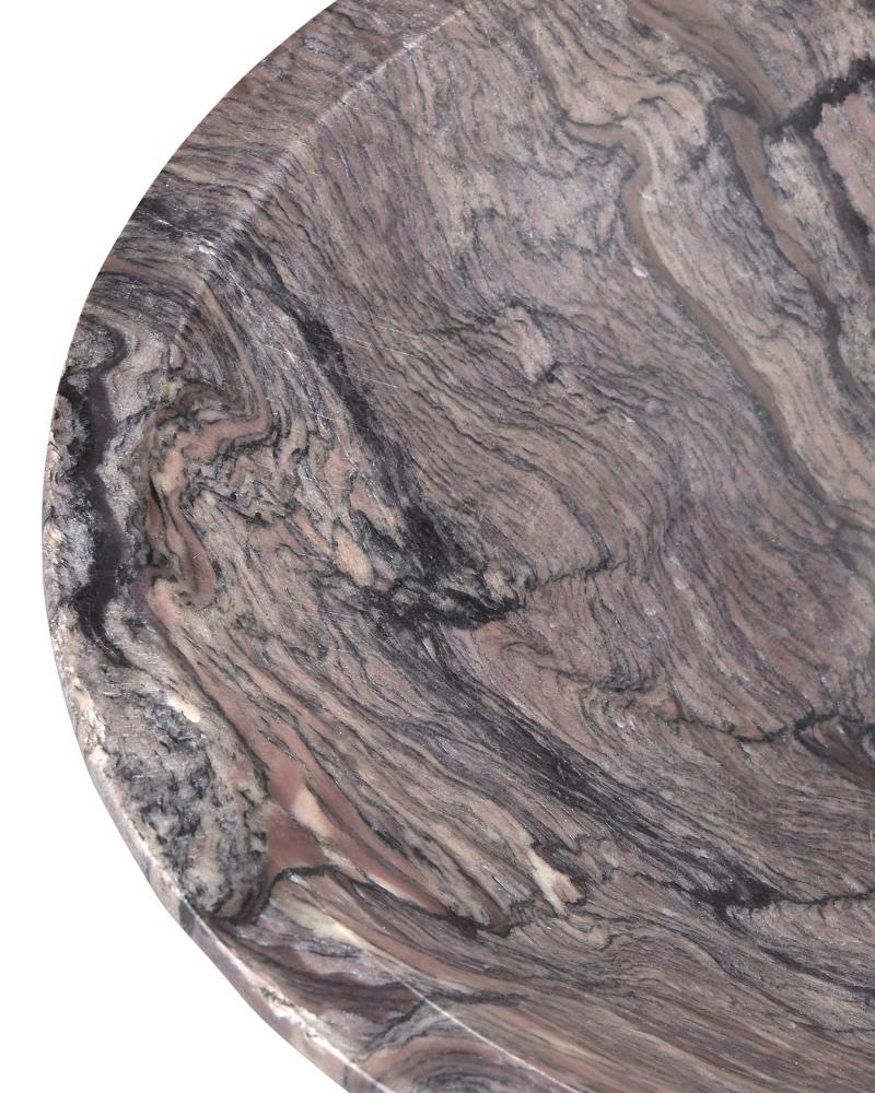 The Lubo Breccia Large Bowl is made of Breccia marble, which has a swirling personality as haunting as the milky way at night. The black footed bowl will be a chameleon in an interior, as it will be just as fitting for holding decorative objects in a main living space as it will be for displaying fruit on a kitchen island. The surfaces will vary from piece to piece.