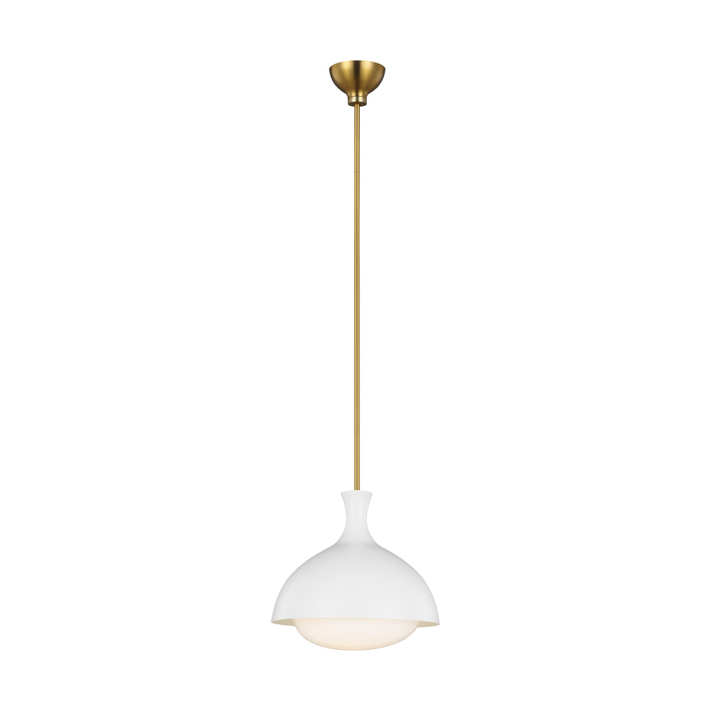 The Lucerne one light indoor pendant in burnished brass is a minimalist light designed with an overhanging shade that eliminates glare, while the white glass casts a soft glow. This style is particularly suited to kitchens, hanging as a single or pair over a breakfast bar.