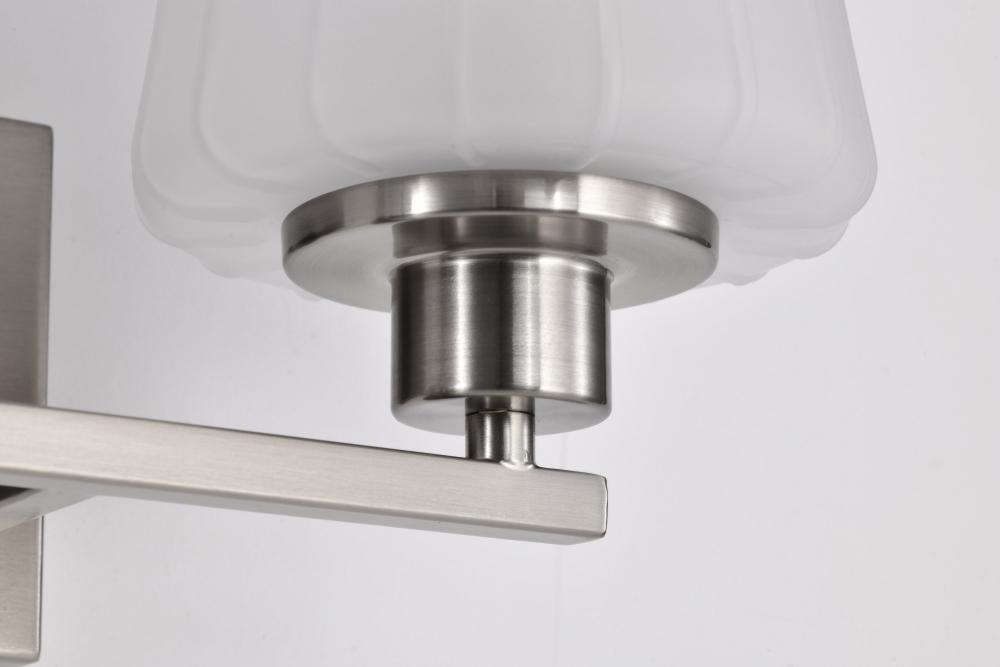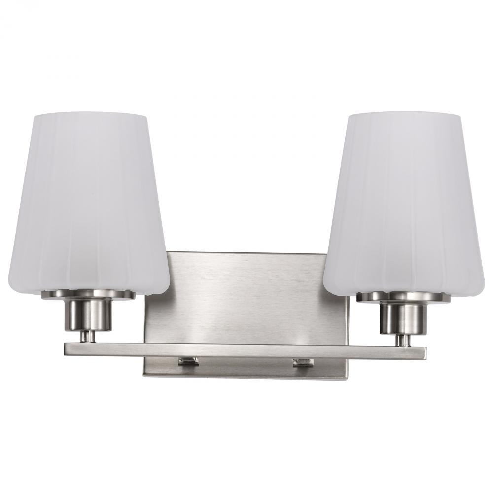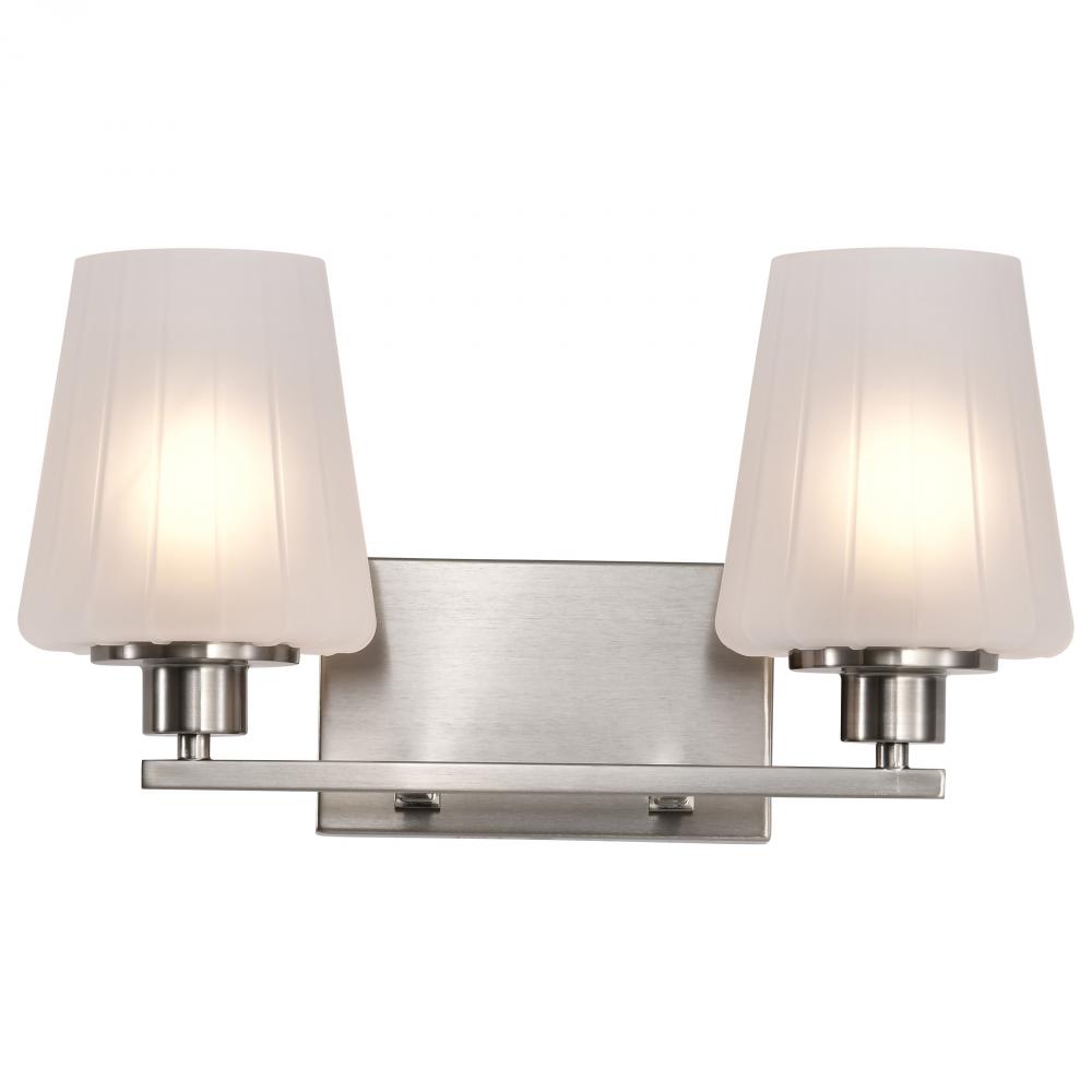 Lune; 2 Light Vanity; Brushed Nickel Finish; Etched White Glass