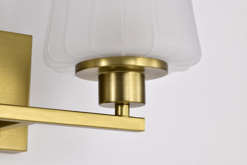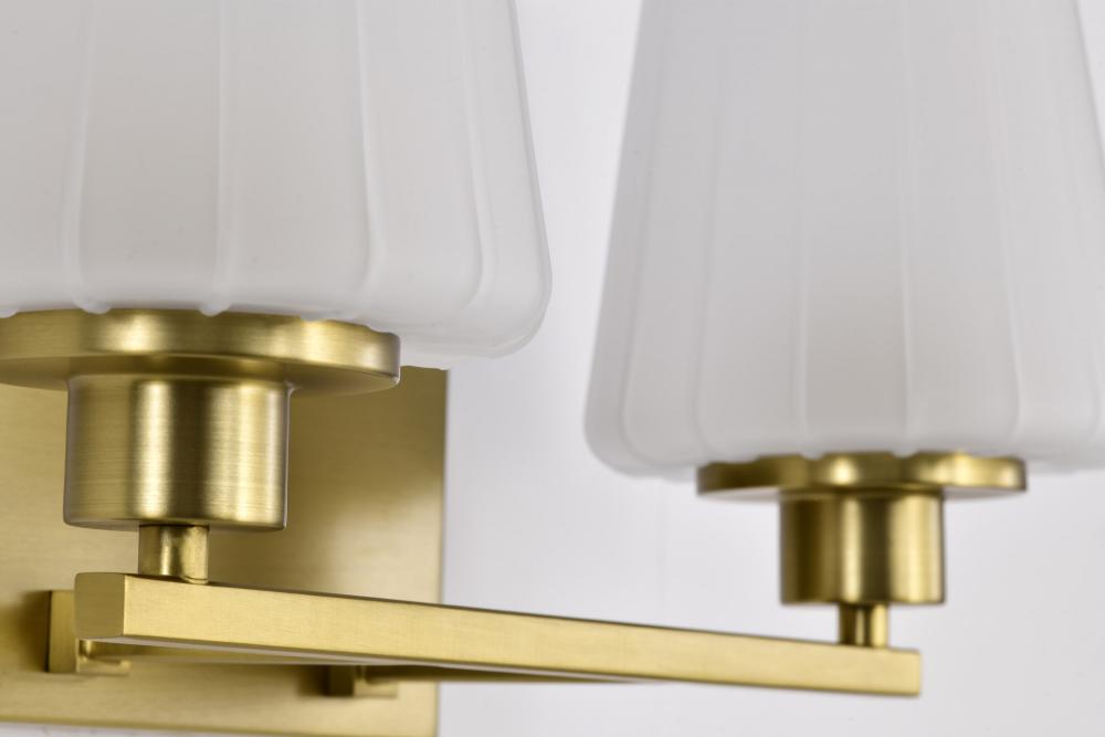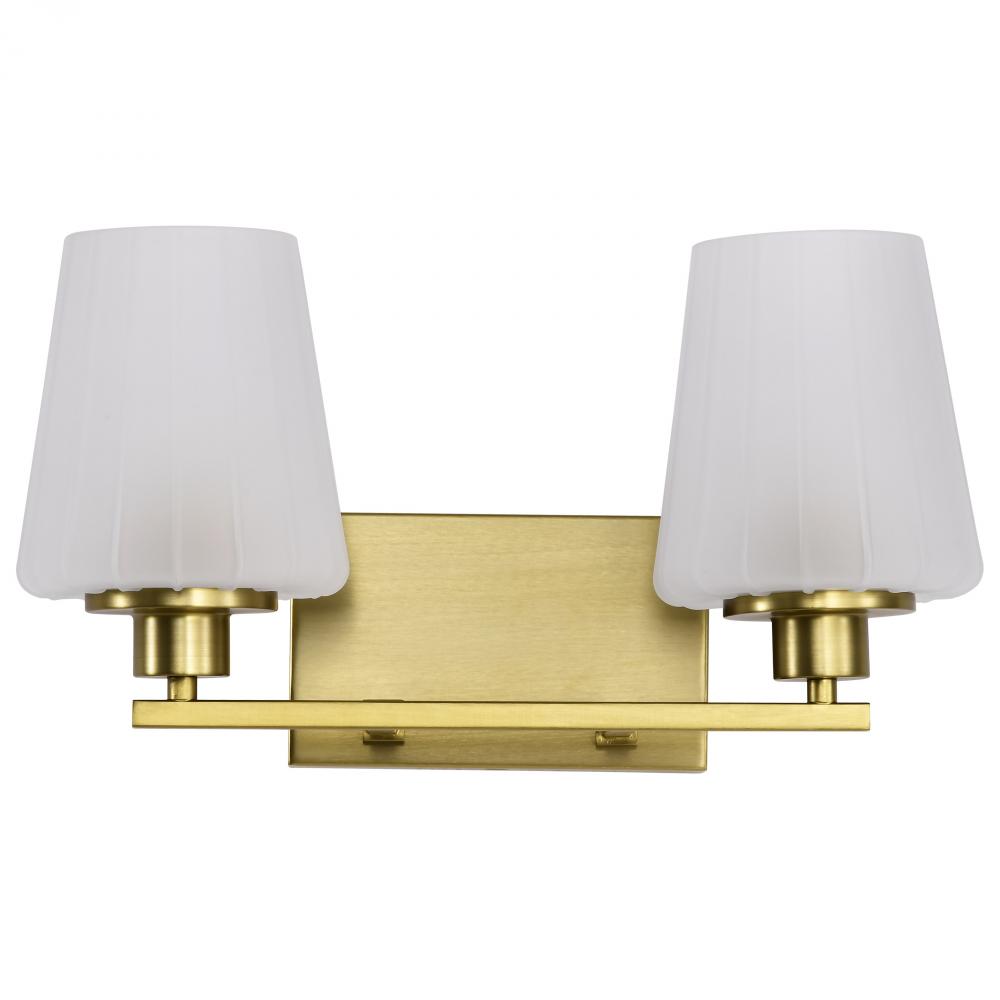Lune; 2 Light Vanity; Vintage Brass Finish; Etched White Glass
