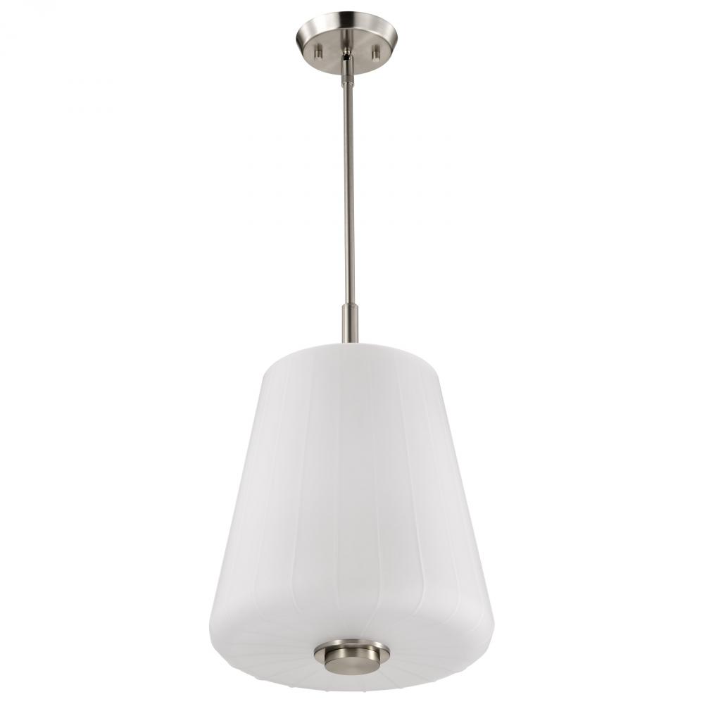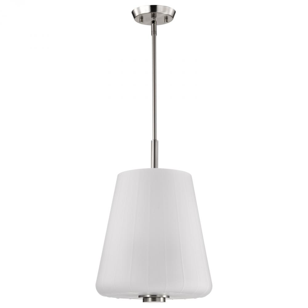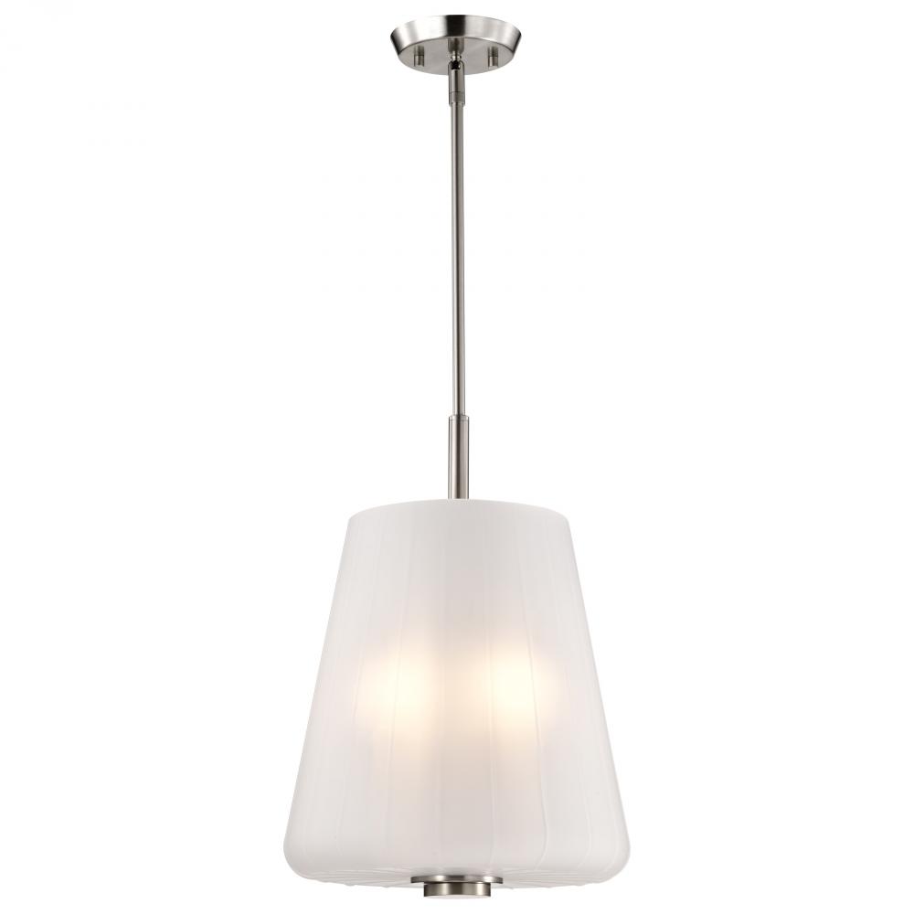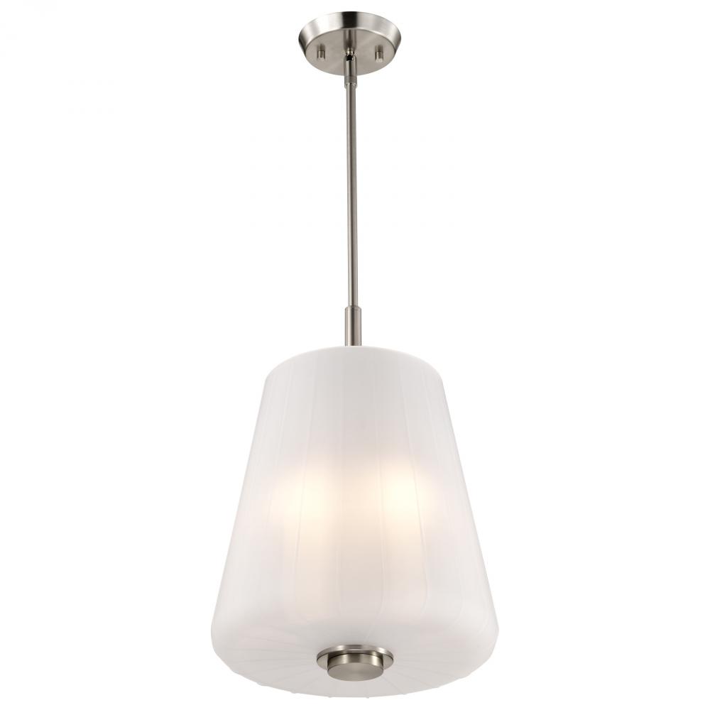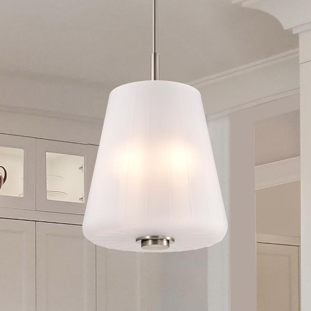 Finished in Brushed Nickel with Etched White Glass