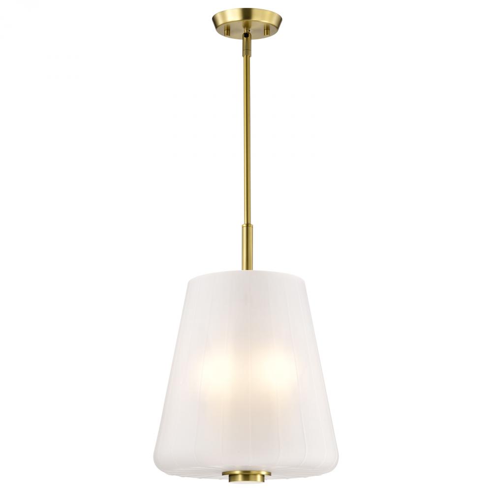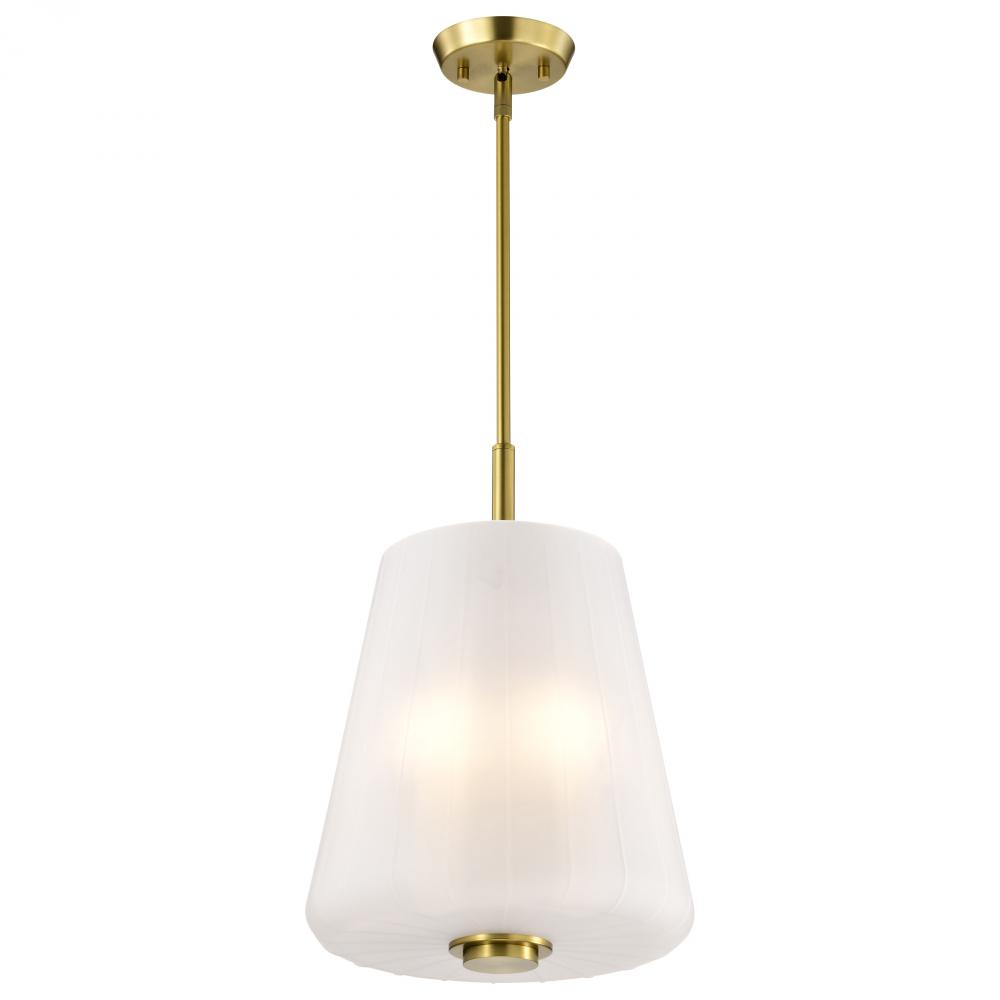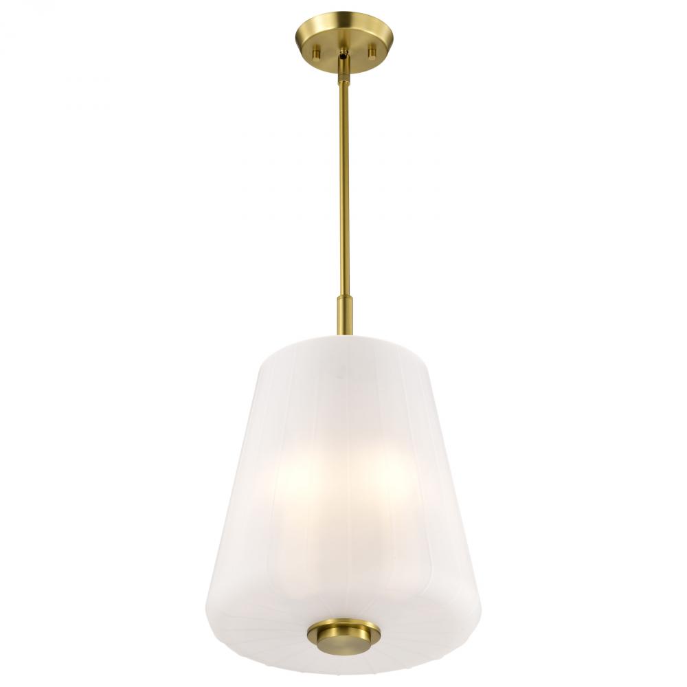 Lune; 3 Light Pendant; Vintage Brass Finish; Etched White Glass