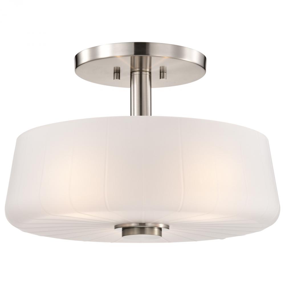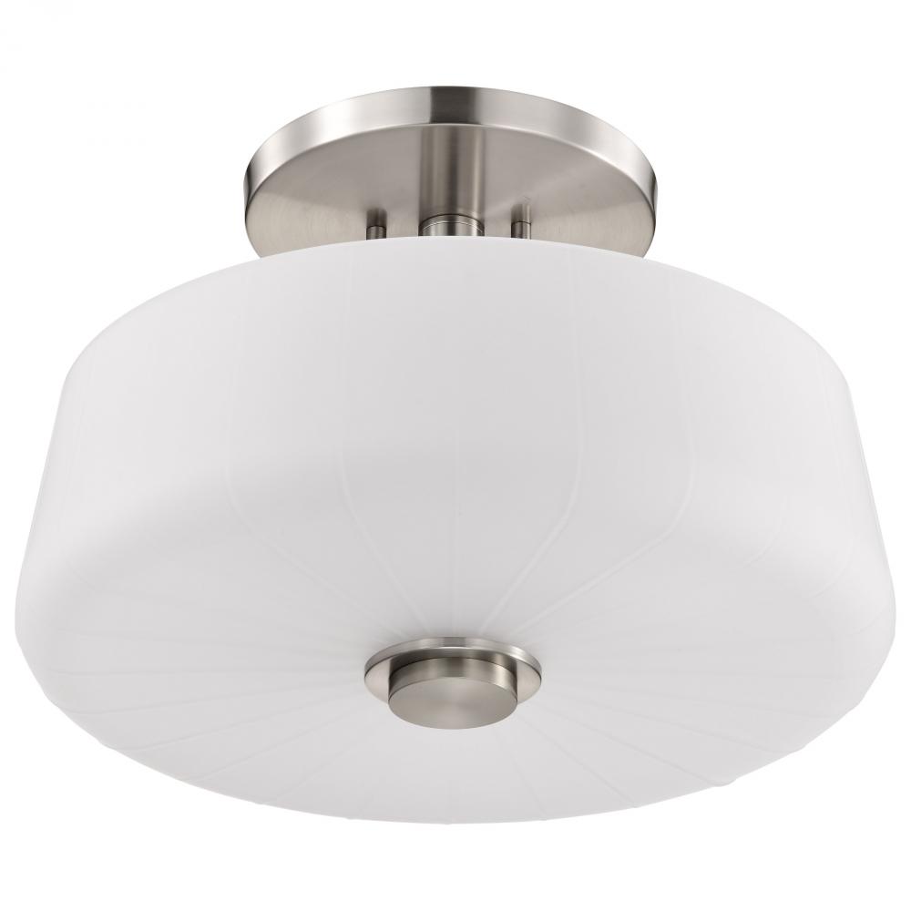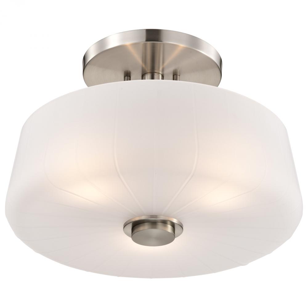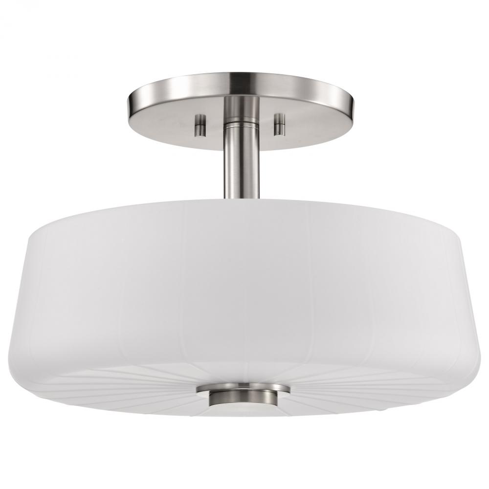 Lune; 3 Light Semi-Flush; Brushed Nickel Finish; Etched White Glass