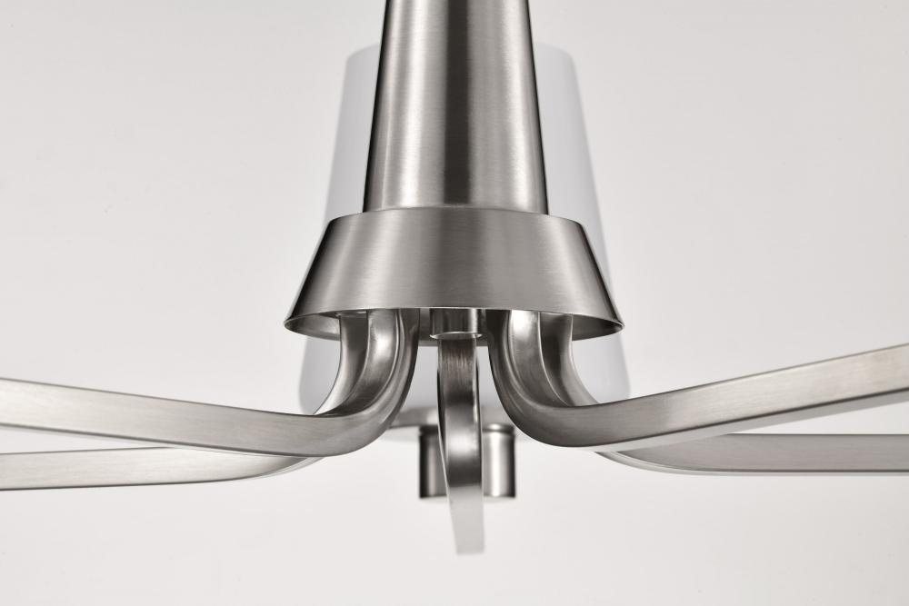 Embrace the classic elegance of the Lune 60-8225 five light chandelier, where updated Mid-Century Modern design meets today's sophisticated style. Featuring graceful lines and thoughtful details, it reimagines retro aesthetics for the contemporary home