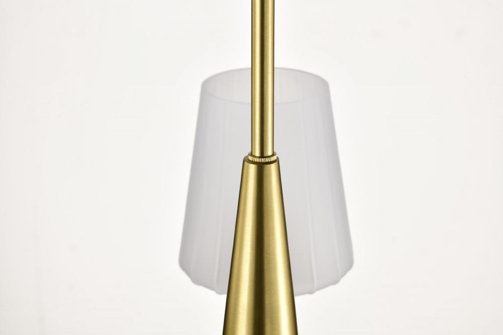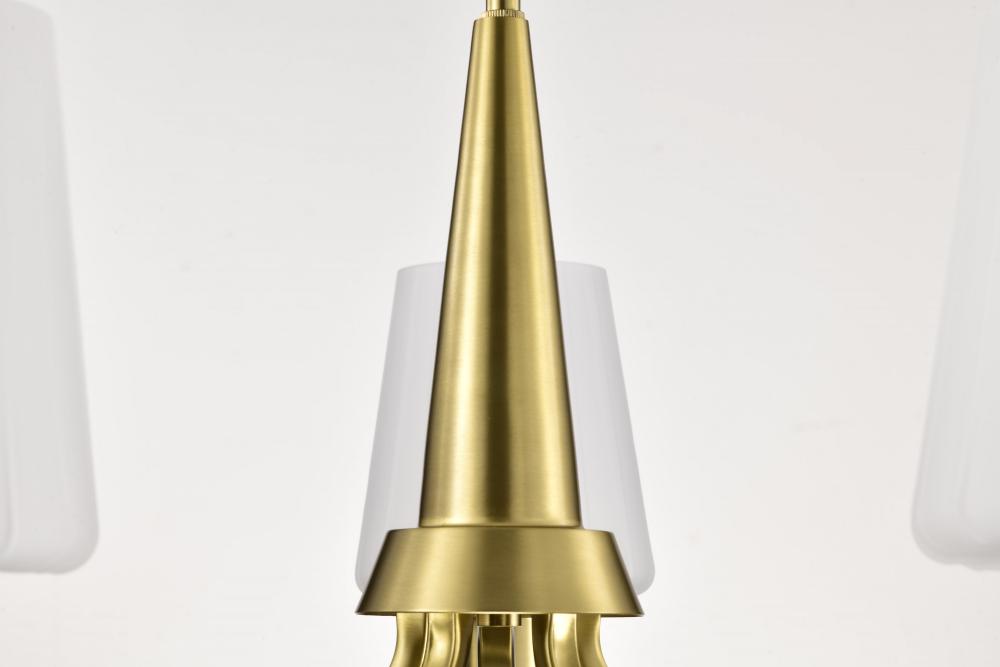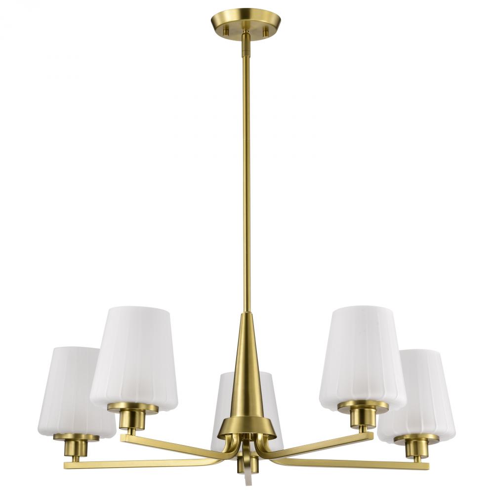 Lune; 5 Light Chandelier; Vintage Brass Finish; Etched White Glass