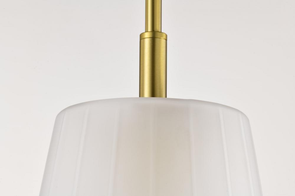 Lune; Mini Pendant; Vintage Brass Finish; Etched White Glass