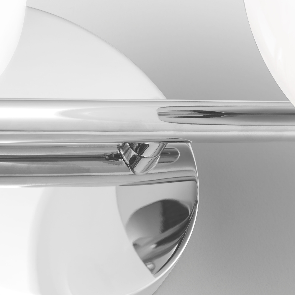 The Lune mid-century modern collection from Ellen DeGeneres Crafted is offered in three finishes including Aged Iron, Burnished Brass and Chrome. The symmetrical abstract of the silhouette is deceptively simple, with your attention drawn to the milk glass shade featuring no visible hardware. Lune has a simple yet sophisticated design. The slender metal frame features Aged Iron or Burnished Brass arms that are complete with a white glass globe at each end. The brass accents handsomely complement the black or brass frame to create a mid-century modern vibe.