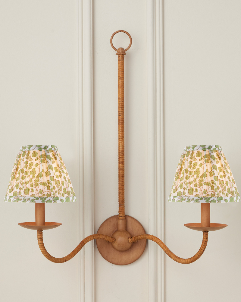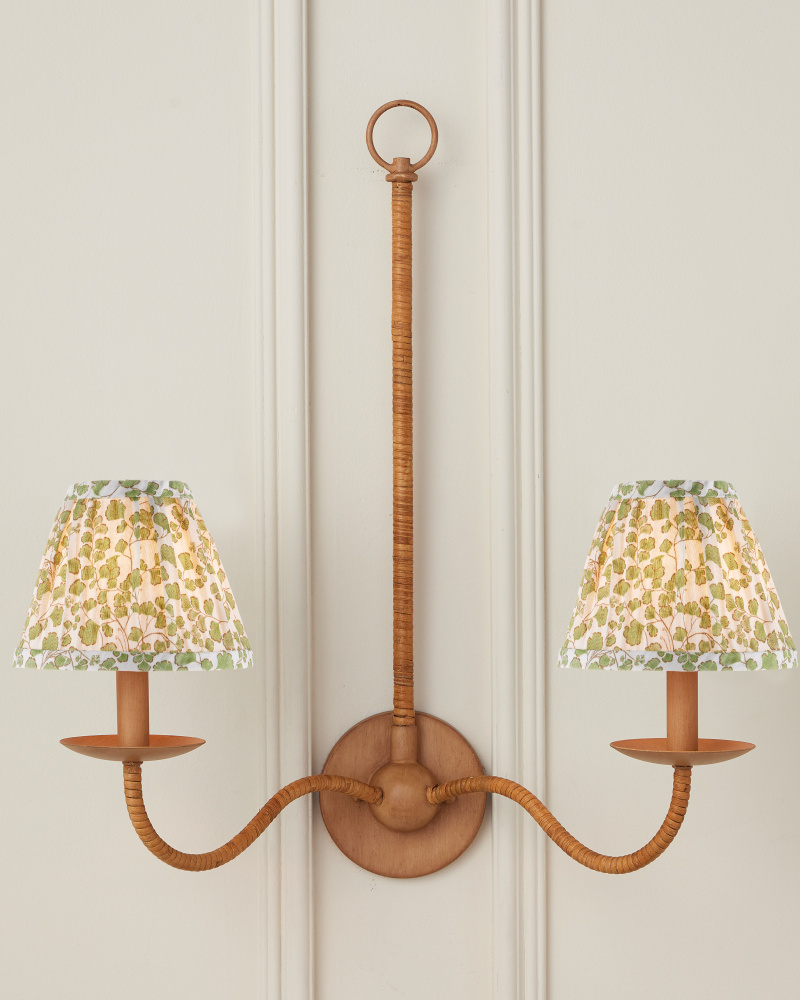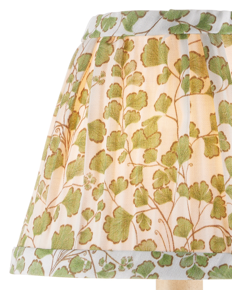 Add a splash of green to a light fixture with this gingko-inspired fabric chandelier shade, tapered and pleated and using fabric from our design partnership with Lacefield Designs.
