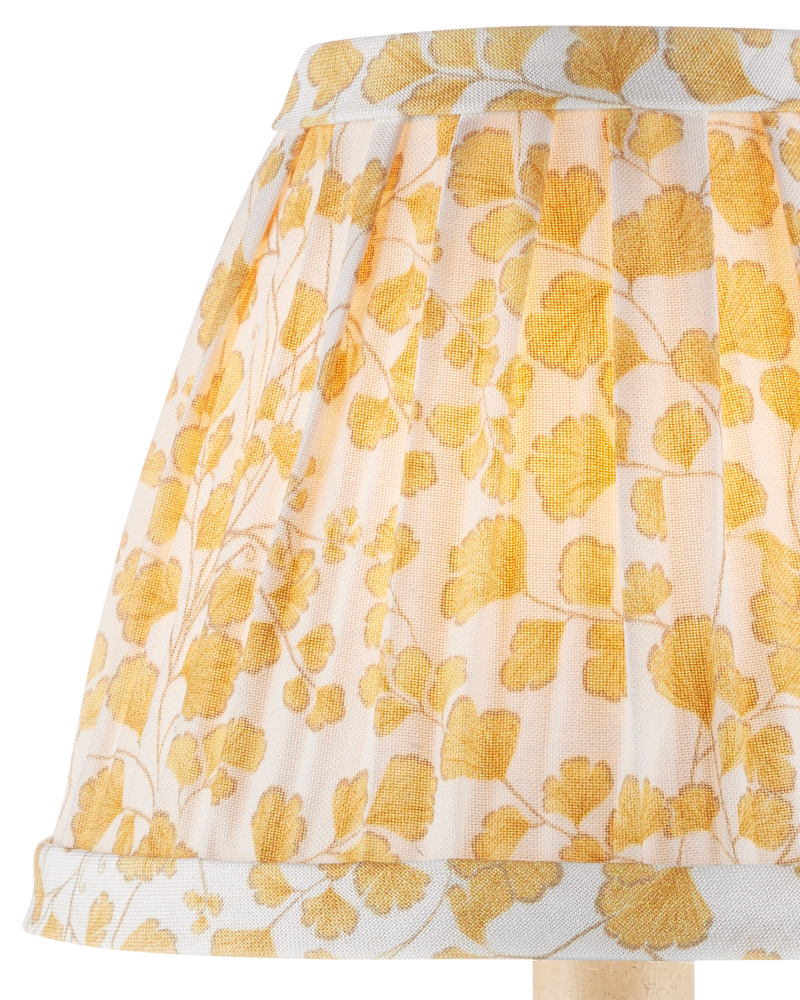 Add a splash of golden yellow with this gingko-inspired fabric chandelier shade, tapered and pleated and using fabric from our design partnership with Lacefield Designs.