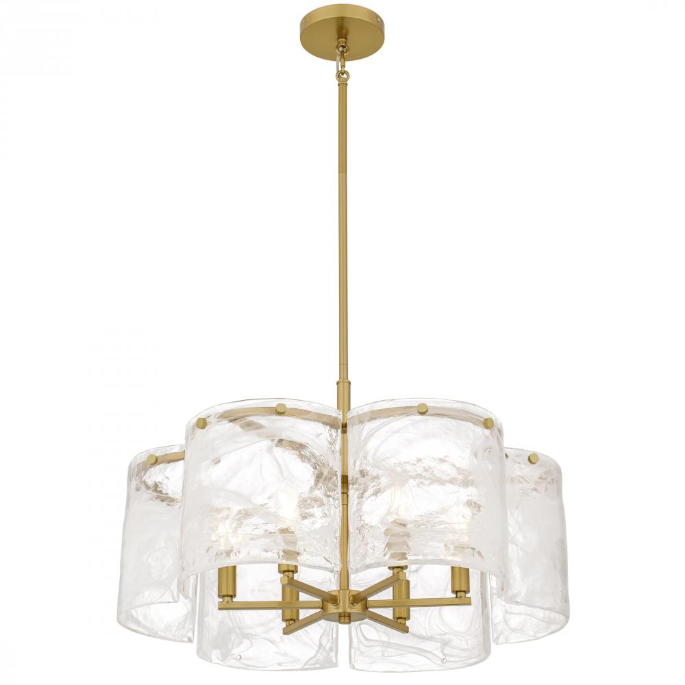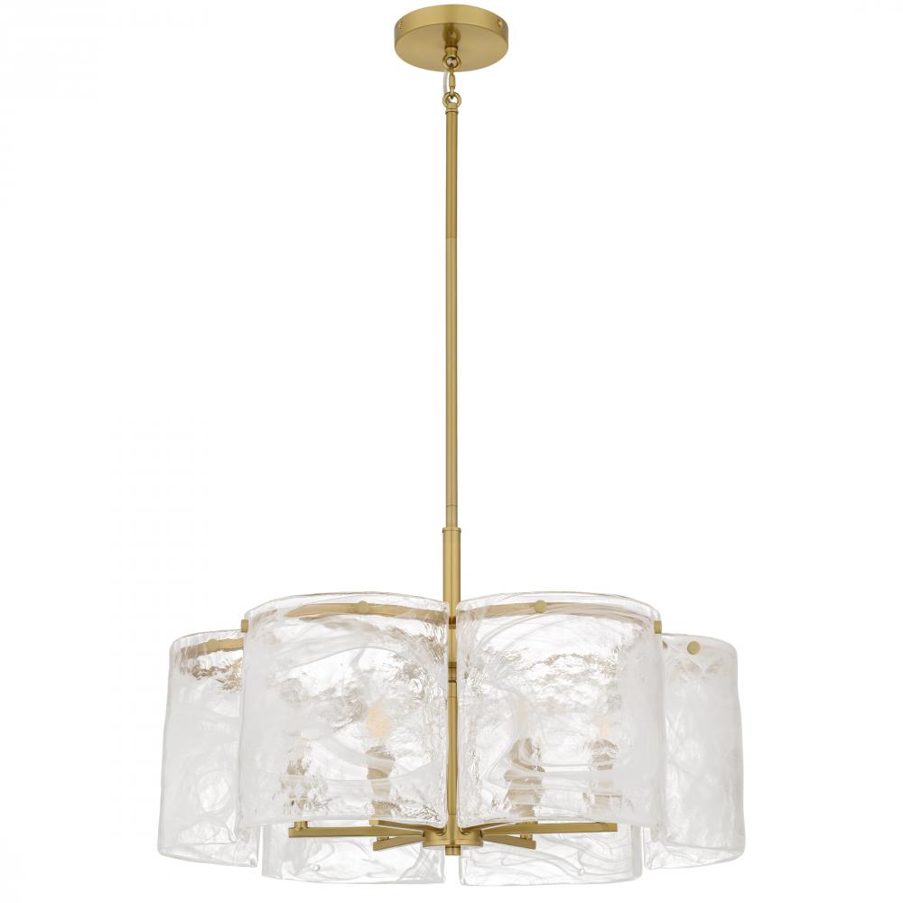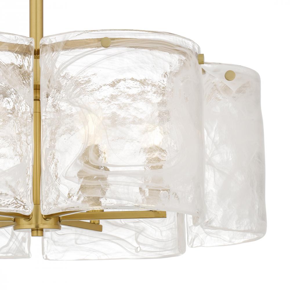 Maisie captures the soft poetry of air and light in motion. Gently curved panels of white swirl glass surround the fixture like flowing silk, their delicate patterns evoking wisps of clouds on a golden afternoon. Each glass piece is uniquely marbled, creat