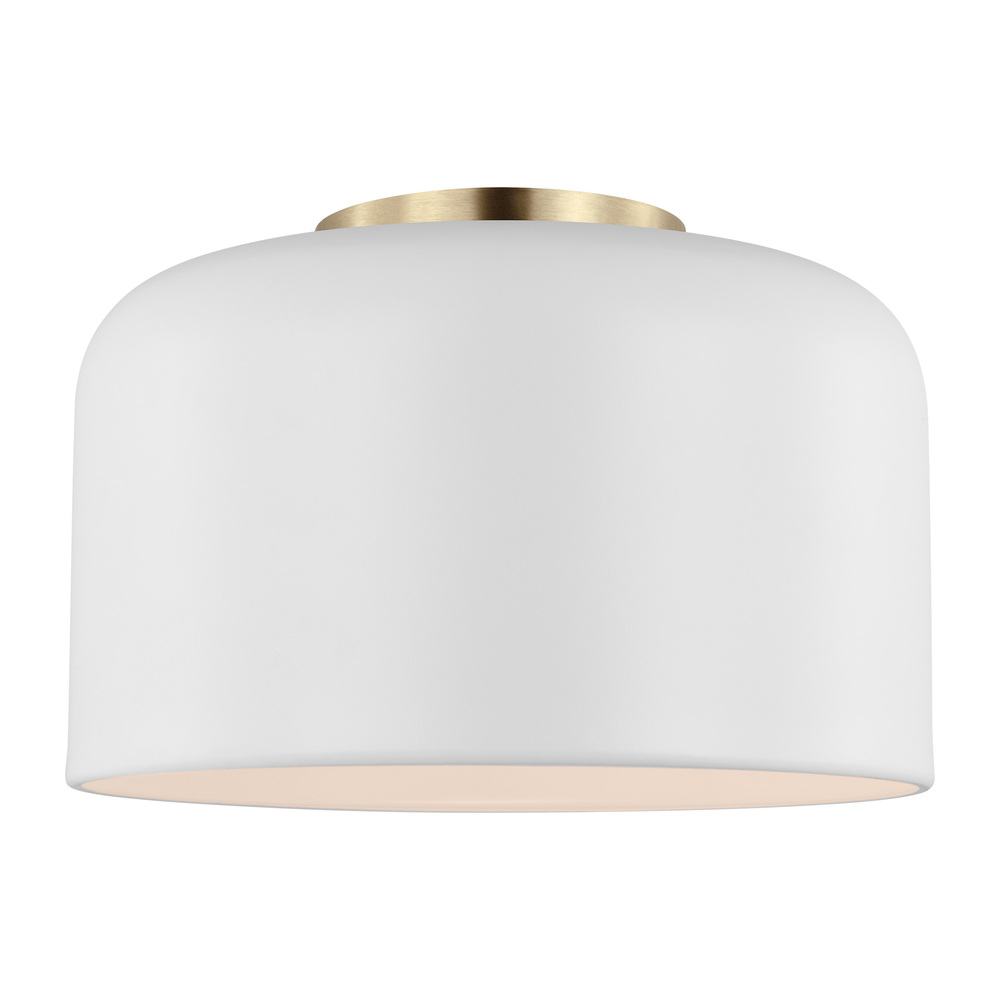 The Malone collection features a youthful color palette and simple detail that really refines the design. The inner part of the shade is highlighted by a beautifully spun-metal disk and socket cover in our warm satin brass finish to create visual interest. Add minimalist chic to your kitchen living room, bedroom or foyer or with this flush-mount fixture, which is as durable as it is beautiful