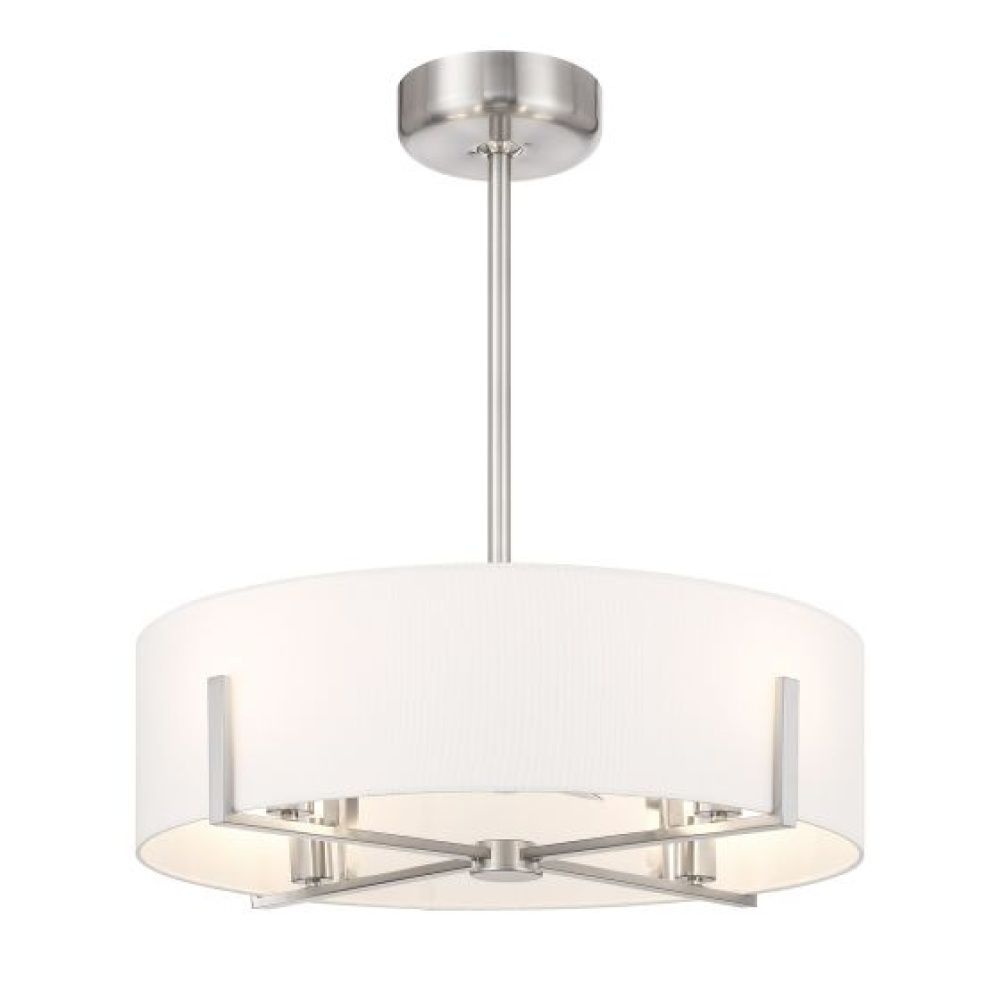 Bring crisply elegant transitional style to your home with the unique Savoy House Mansell 4-Light Fan D'Lier! It flaunts a white fabric shade held in place on jewelry-like prongs that are finished in Satin Nickel. Get bright and welcoming illumination from the included LED E26-base bulbs, too. Mansell is 10" in height and 26" in width. It comes with a 4" downrod and an 18" downrod. For extra convenience, a handheld remote control is included. A Savoy House exclusive, Fan D’Liers combine the best of ceiling fans with the best of chandeliers in one fabulously fashionable fixture. Inspired by high-end designer styles, these custom designs take top trends to a whole new level.