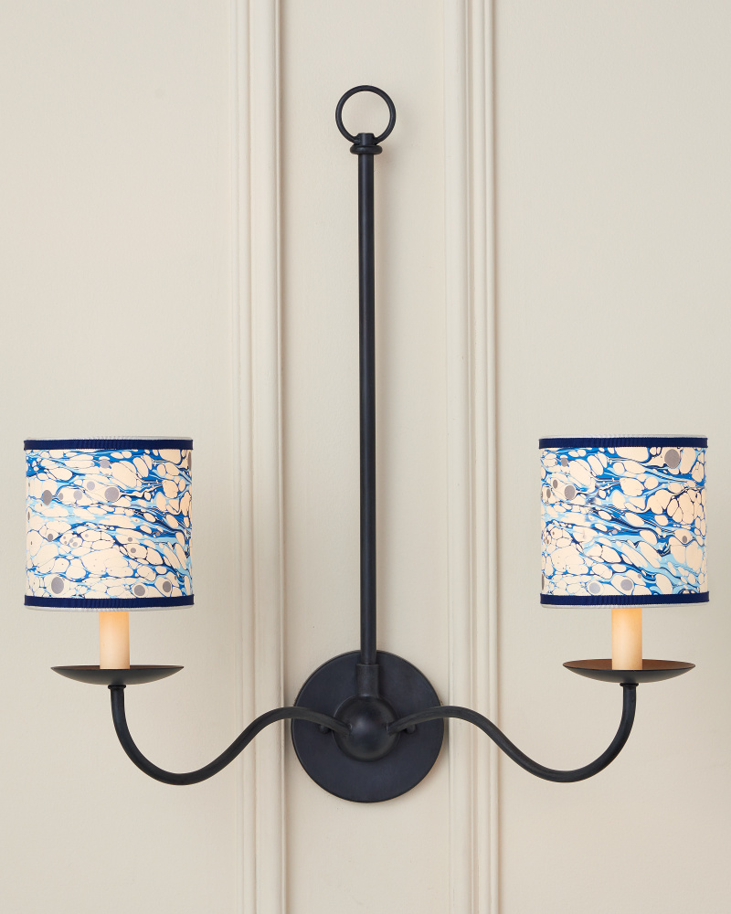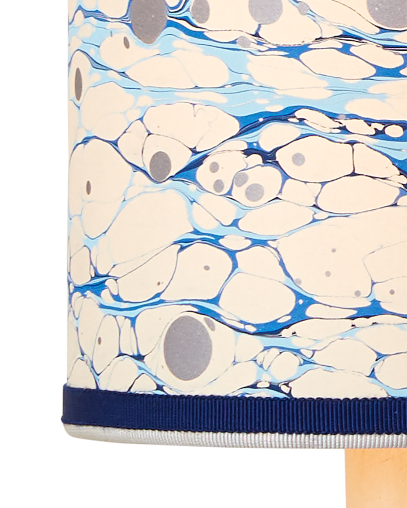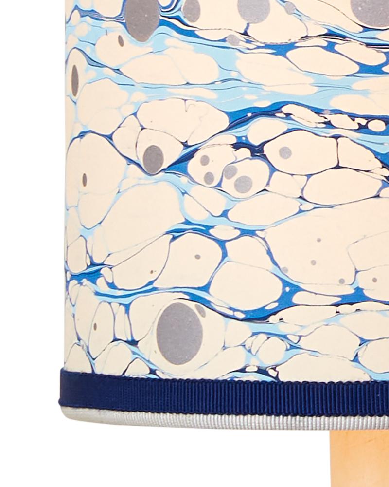 Petite shades are an easy way to bring added style to a space while also introducing color and texture, particularly when they are made from artisanal marbleized paper and ornamented with two layers of grosgrain ribbon. The Marble Blue Lace Paper Drum Chandelier Shade has a lace pattern in blues that was achieved by a New England atelier. Patterns will vary slightly due to the nature of the marbleizing process.
