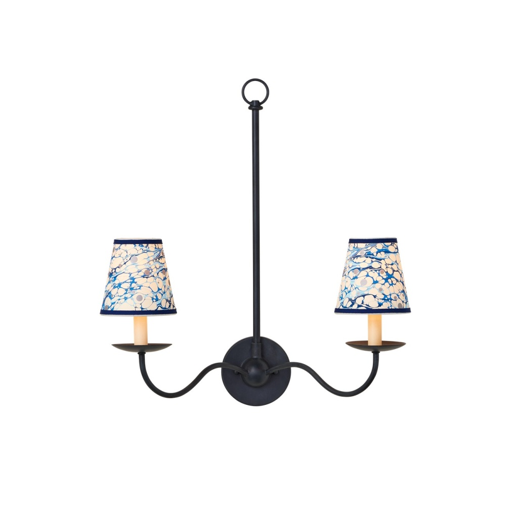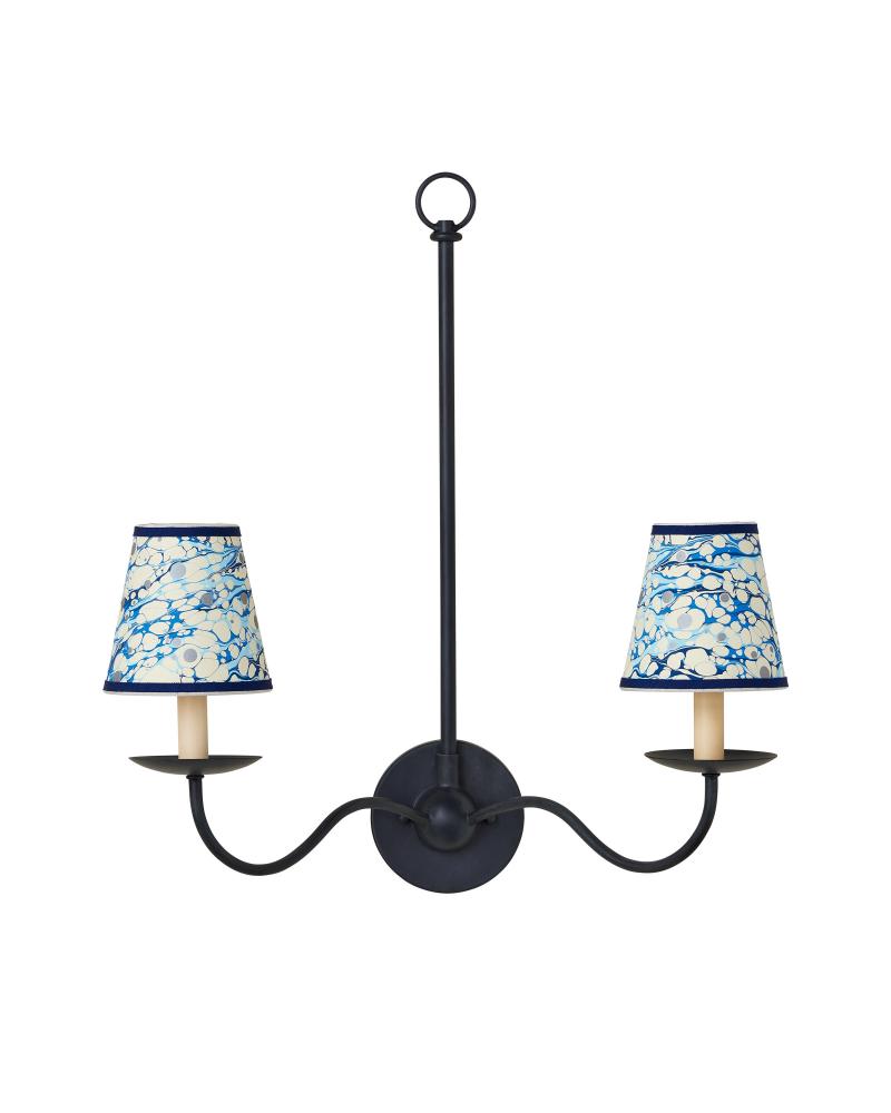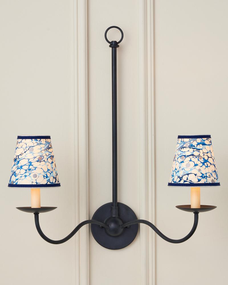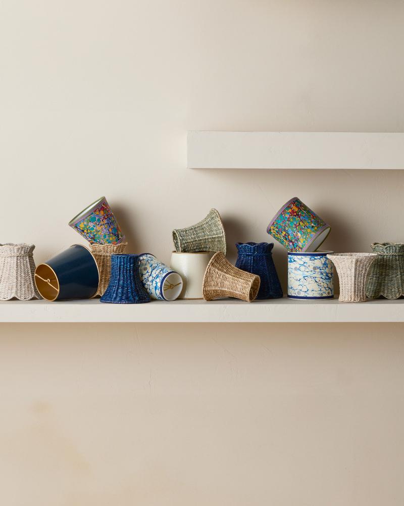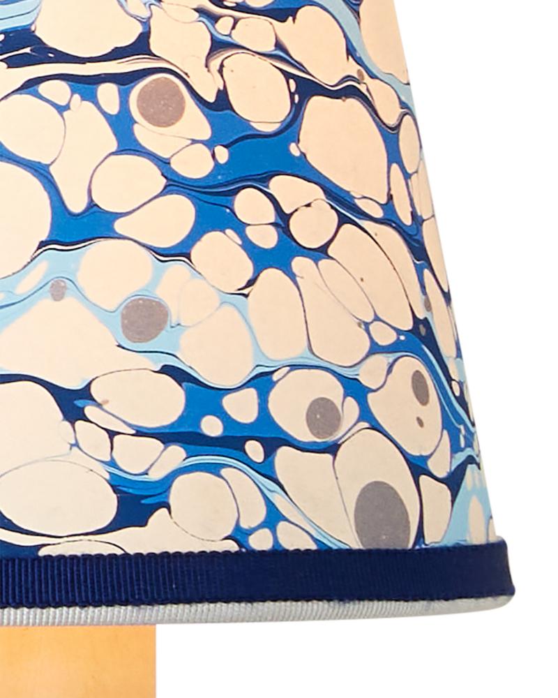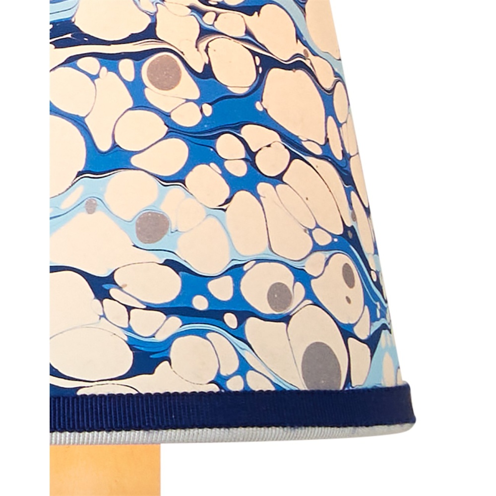 Petite shades are an easy way to bring added style to a space while also introducing color and texture, particularly when they are made from artisanal marbleized paper and ornamented with two layers of grosgrain ribbon. The Marble Blue Lace Paper Tapered Chandelier Shade has a lace pattern in blues that was achieved by a New England atelier. Patterns will vary slightly due to the nature of the marbleizing process.
