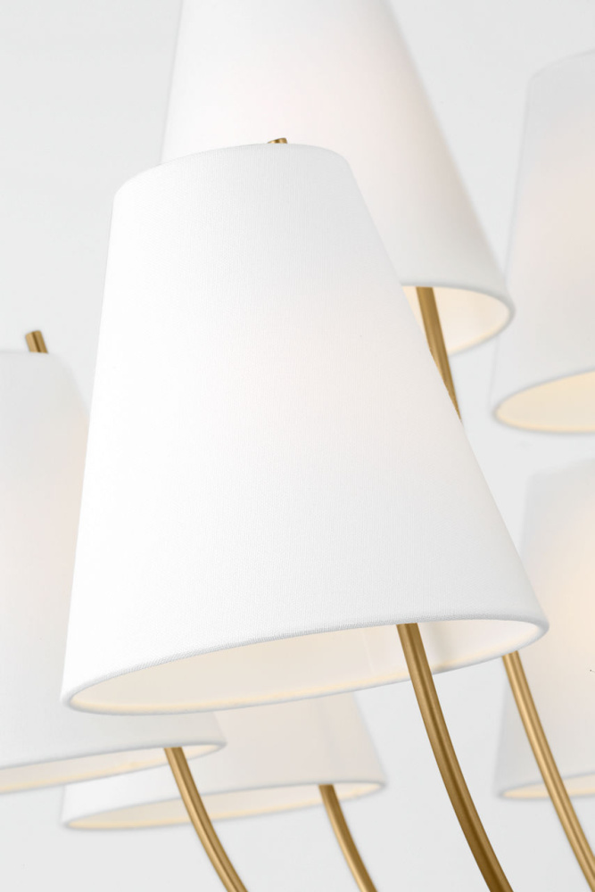 The Marina 40" Chandelier by Chapman & Myers is the boldest expression of the collection’s nautical inspiration. Designed With a frame that recalls the shape of a boat hull, its two-tiered arms extend through the shade and rise above it—adding sculptural depth and visual movement. With its expansive scale, the 40" chandelier is ideal for great rooms, dining areas, and large foyers, where its layered silhouette and clean lines create a commanding yet elegant presence. Marina reimagines maritime structure as refined lighting, offering a statement piece that’s both grounded and graceful.