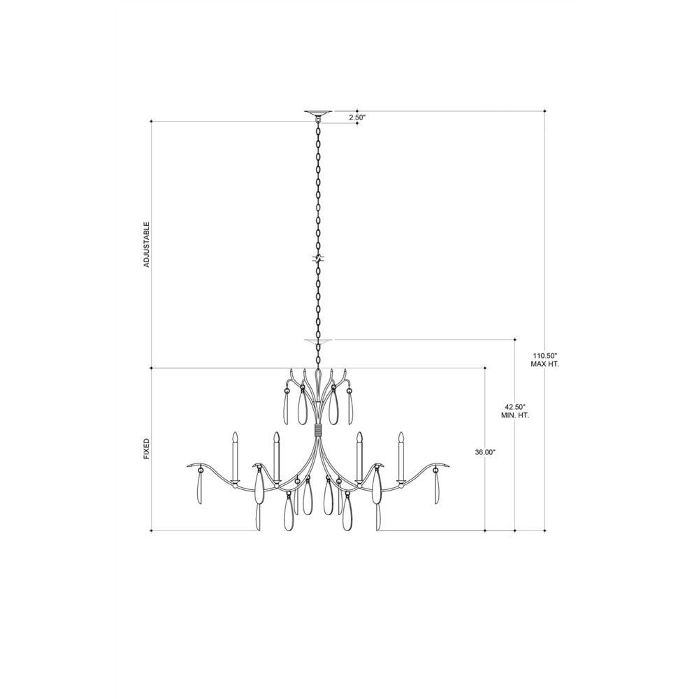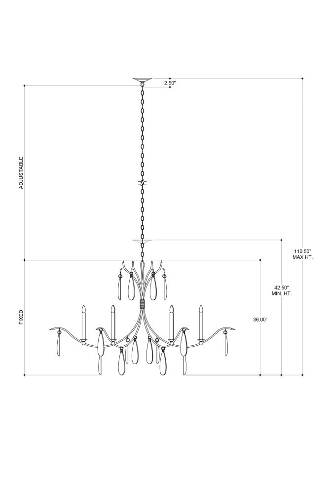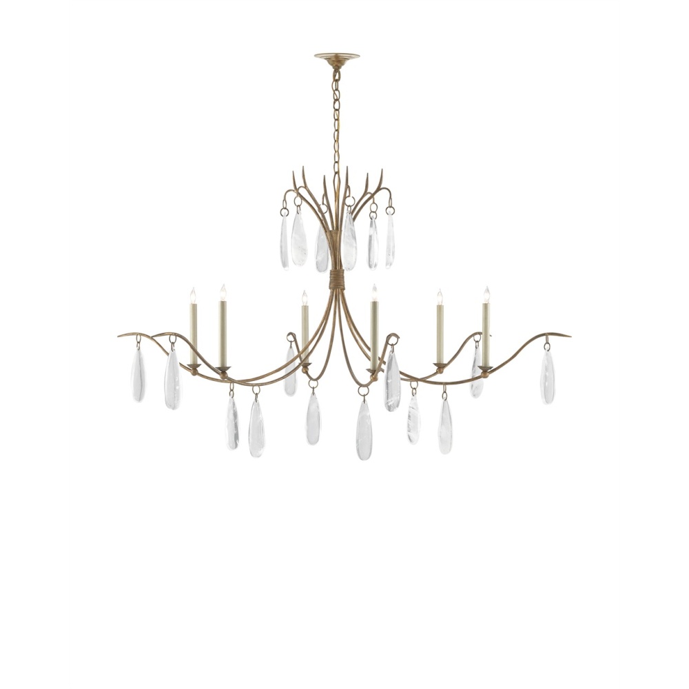 The Marshallia Chandelier, made of wrought iron in a rustic gold finish, has slender arms dripping with faux rock crystal pendants. A design note is how the candle-sleeves elevating the six bulbs are slender, which enhances the delicacy of this traditionally beautiful gold chandelier. Adjustable from 42.5" to 110.5" with use of included chain/rod kit/cable. If your space calls for a longer drop, additional chain/rods/cable is available for purchase.