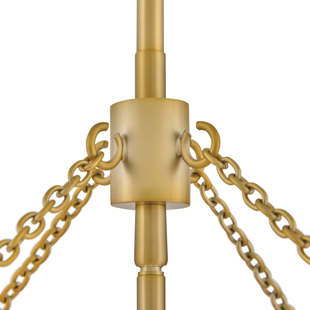 Splendidly soft, Gwen’s shapely scalloped shade complements inviting light with layers of Off-White Linen suspended from delicate chains and minimal metal stems. A Black or Lacquered Brass finish provides a versatile complement to any interior style.