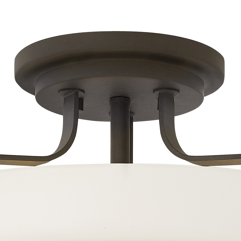 Harper’s sleek, retro design elevates the traditional ceiling mount with a unique clear seedy glass bound by a prominent metal ring and decorative knobs. Available in five classic finishes.