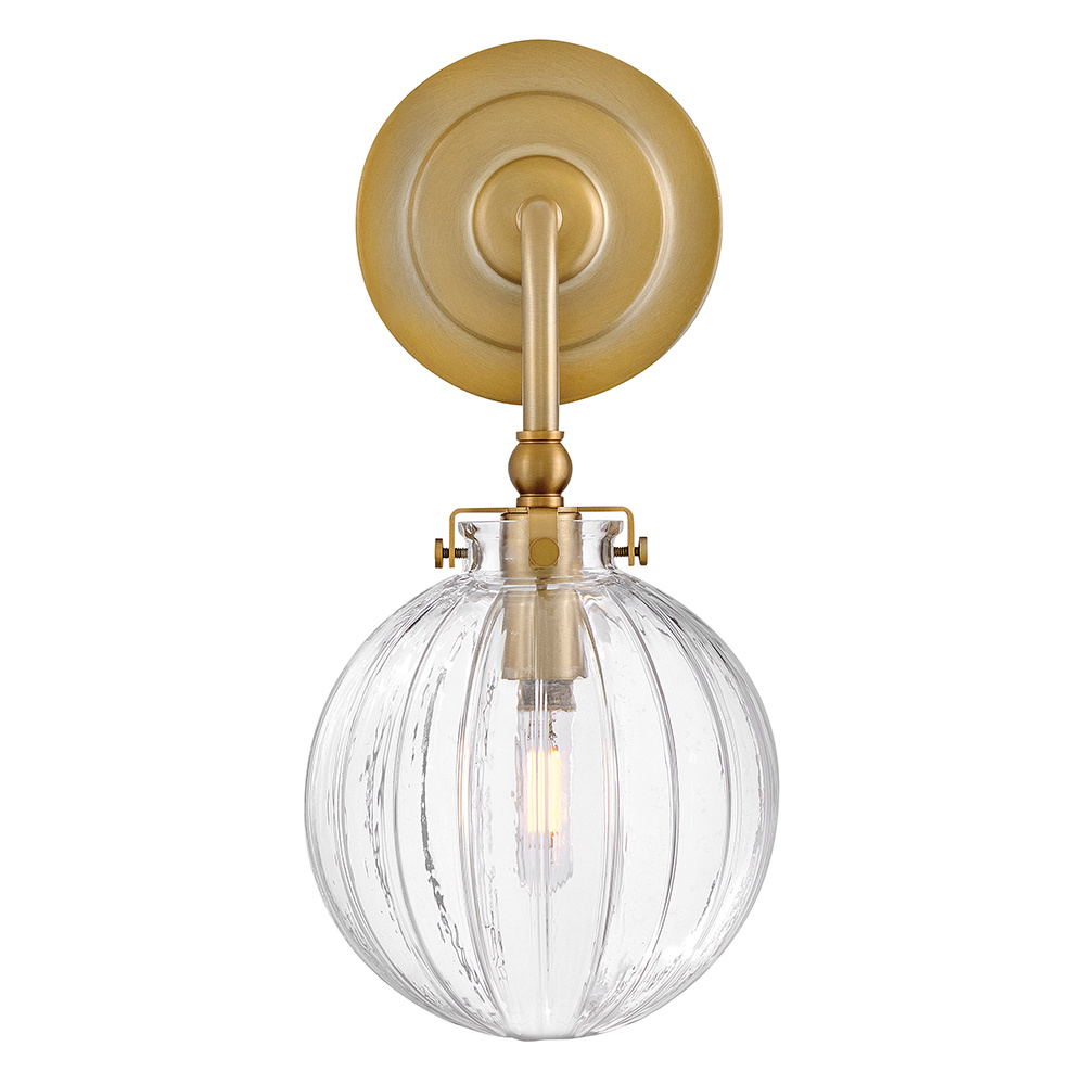 Combining vintage charm with practical design, Helene’s graceful, ribbed glass globes cast beautifully refracted light. Delicate detailing and unique knobs securing each shade are complemented by a rich Lacquered Brass finish to perfectly accentuate your space.