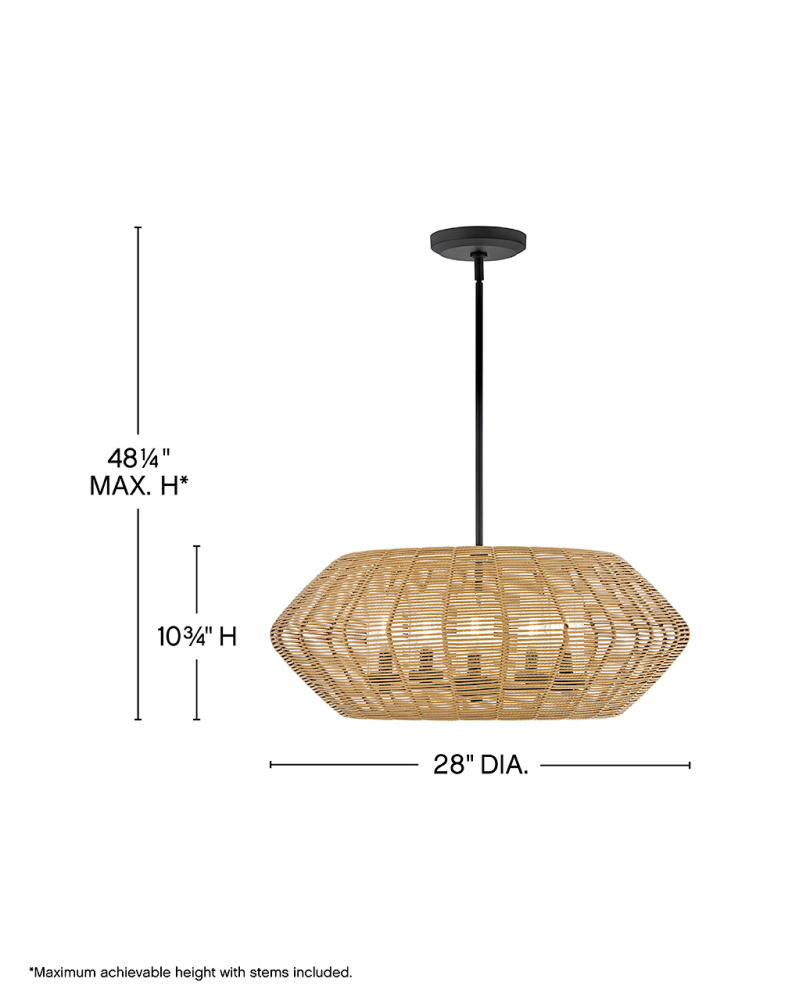 Luca's coastal vibe is permeated with a slightly exotic edge. The bold silhouette showcases a robust, weather-resistant, woven drum shade and candelabra lamps enclosed in clear, seedy glass for plenty of functional light. Offered in a variety of finish options. Luca is part of the Lisa McDennon Collection.