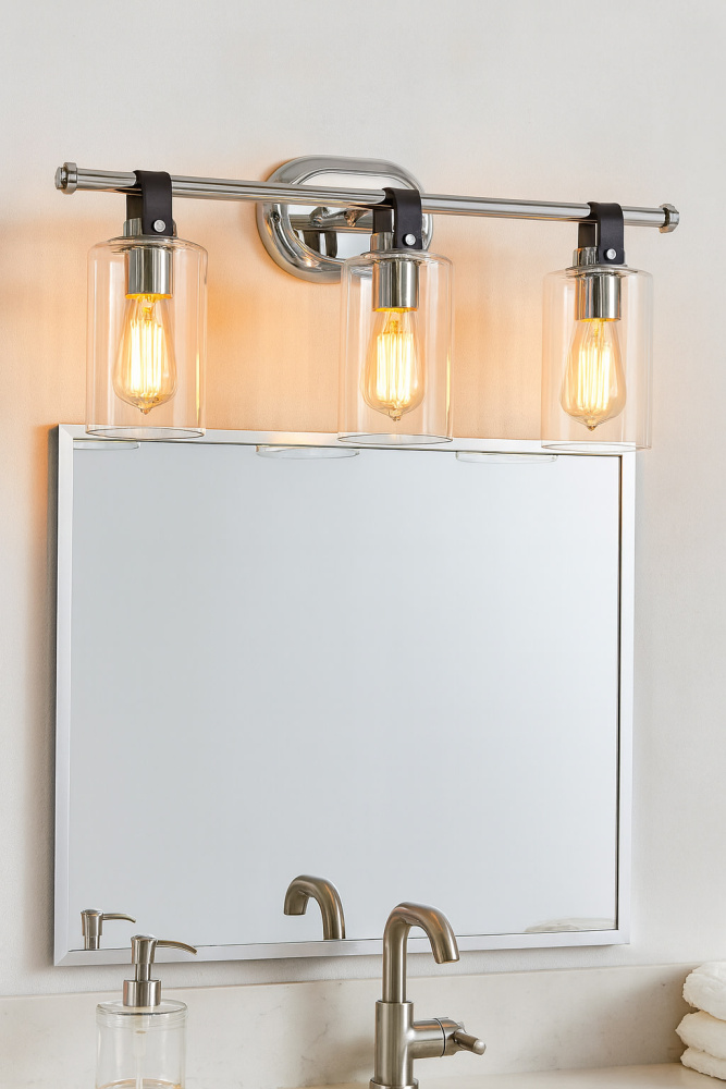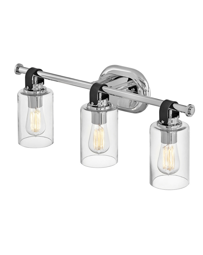 Halstead evokes Modern Americana at its finest. Designed with an equestrian flare in mind, a faux leather finished strap reinforces a rustic simplicity that harmonizes with the modern refinement of clear glass shades. Offered in a Chrome or Heritage Brass finish, Halstead’s versatility makes it the perfect “anywhere” design.