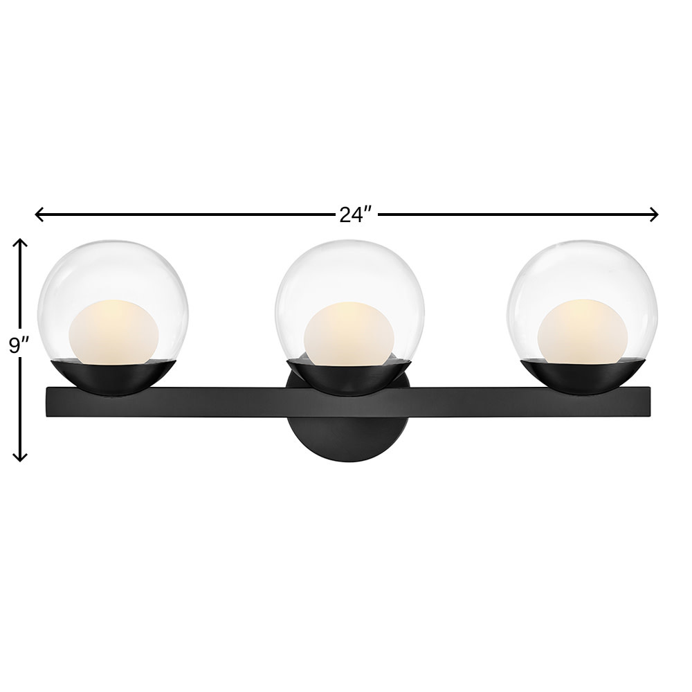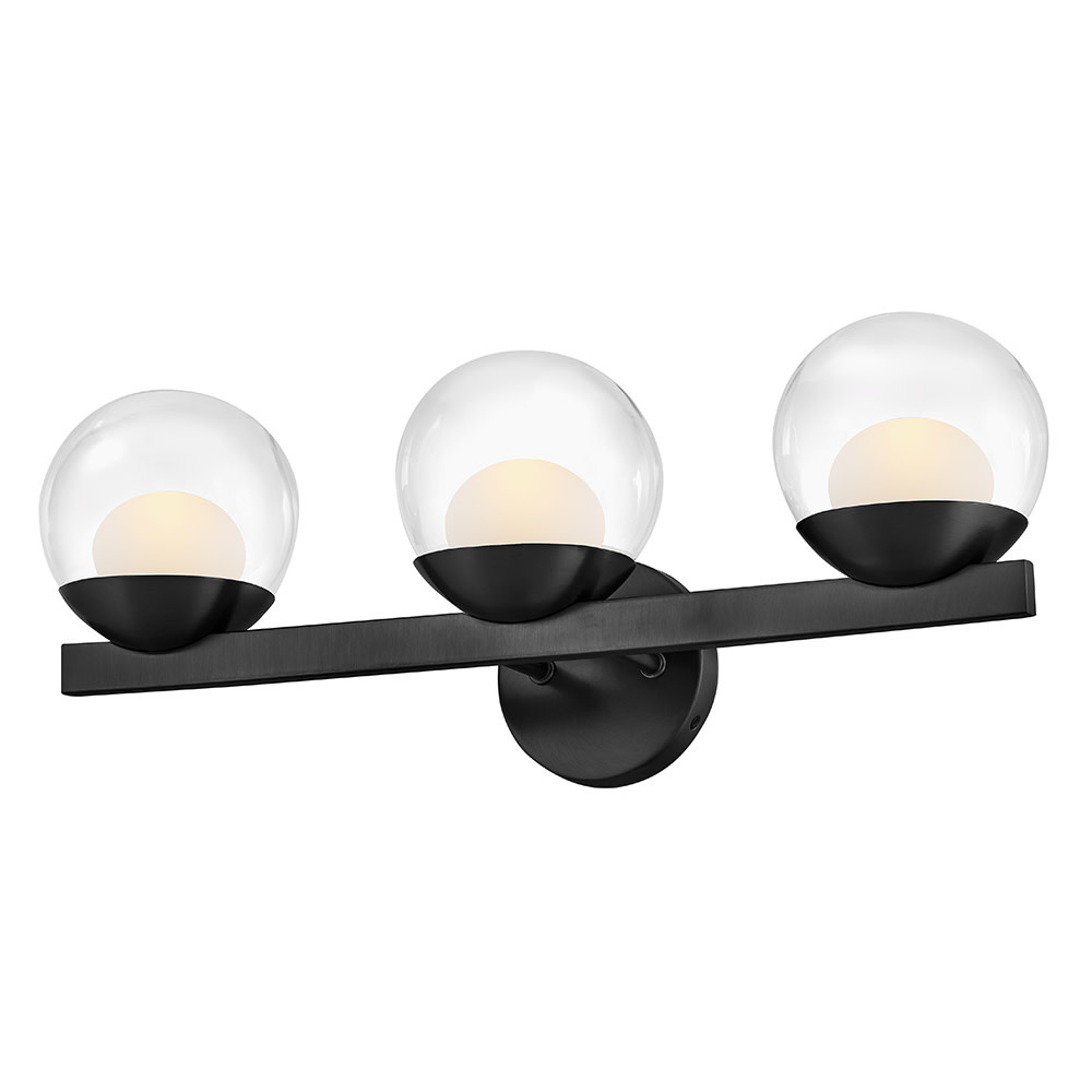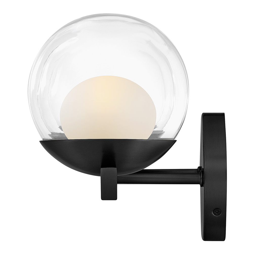 Sophisticated with an ultramodern twist, Sunni’s sleek design showcases a distinctive glass globe that artfully layers a clear glass outside with an etched white interior. A minimal backplate and frame are finished in a bold Black or luxurious Lacquered Brass finish to easily complement your space.