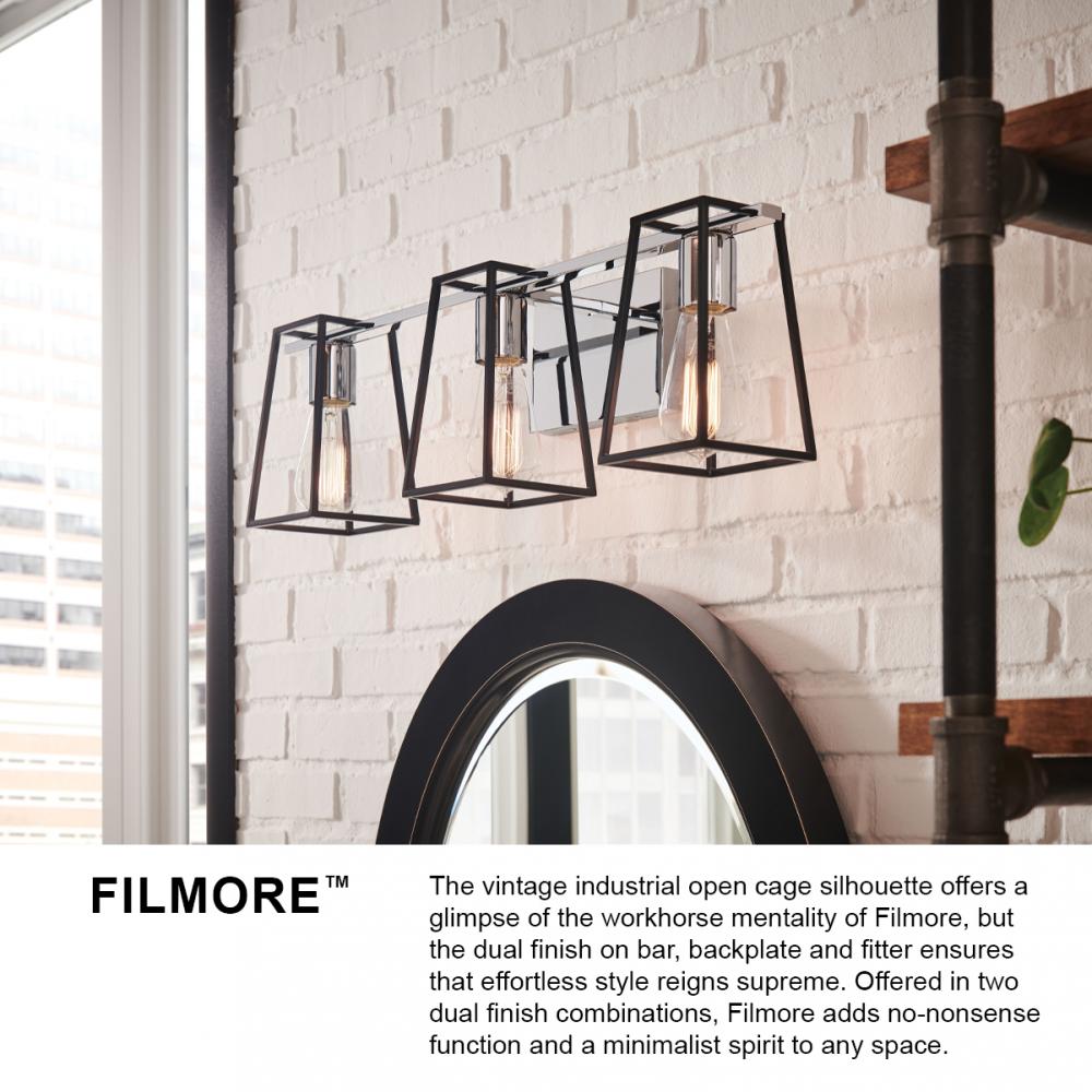 Filmore's open cage silhouette is a perfect showcase for vintage filament bulbs while offering a glimpse of its workhorse mentality. An industrial-inspired backplate and fitter ensure that effortless style reigns supreme. Filmore is sure to add no-nonsense function and a transitional spirit to any space and is available in a variety of finishes.