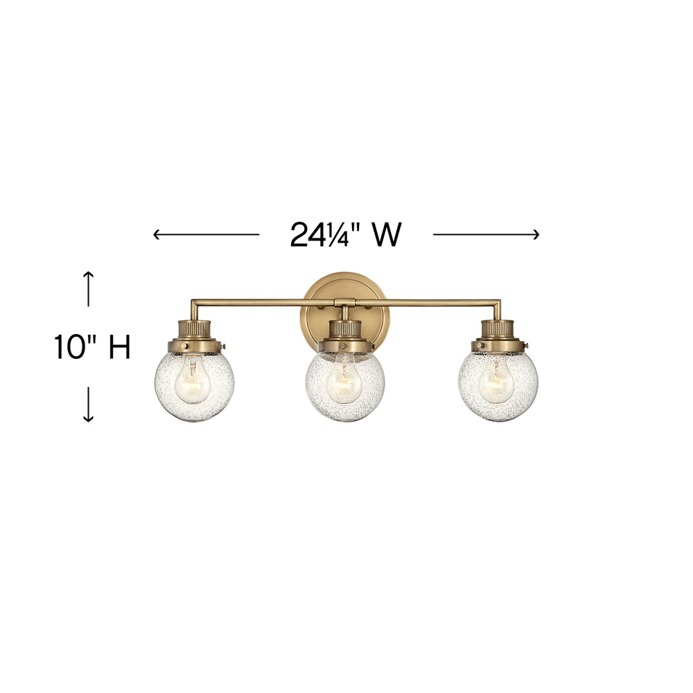 Poppy features clear glass spheres that bubble out of the refined, ribbed Chrome or Heritage Brass fitters to create a simple, yet sophisticated silhouette. An elegant, stepped backplate and crisp crossbar anchor this airy design. Poppy showcases mid-century style with a spectacular spin.