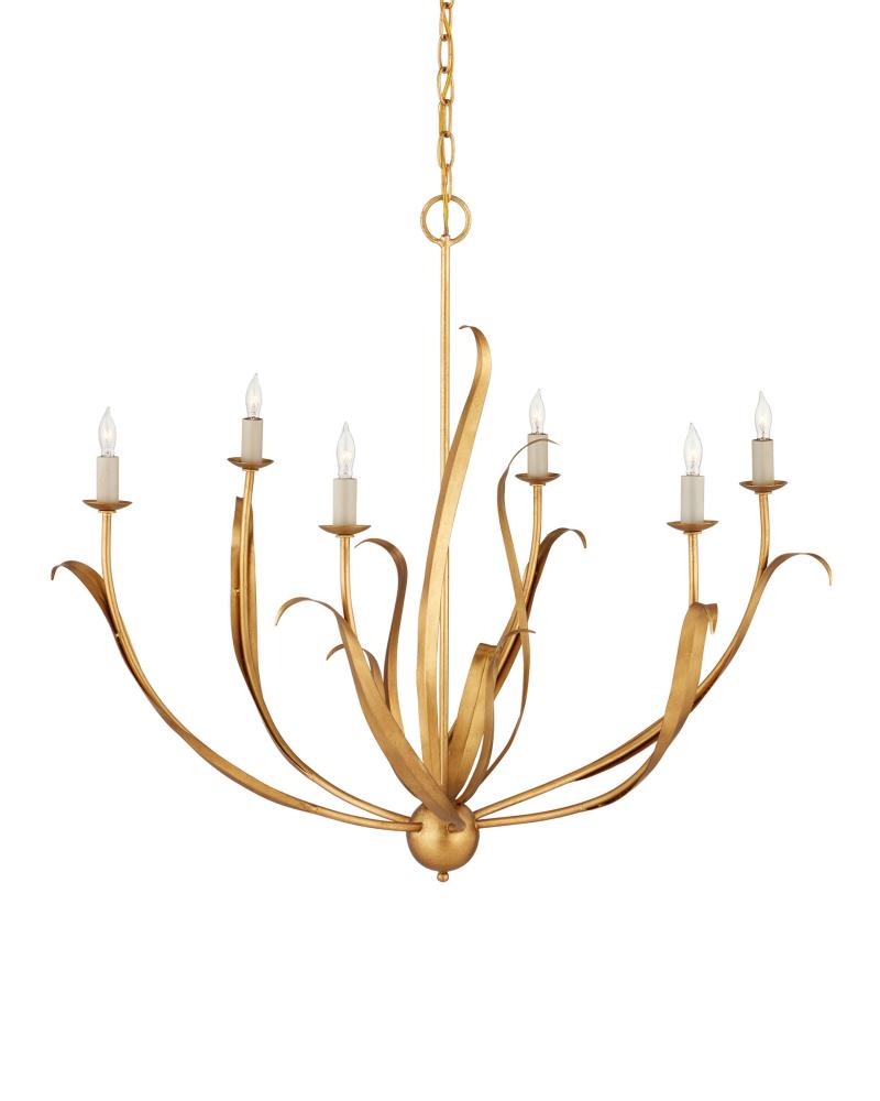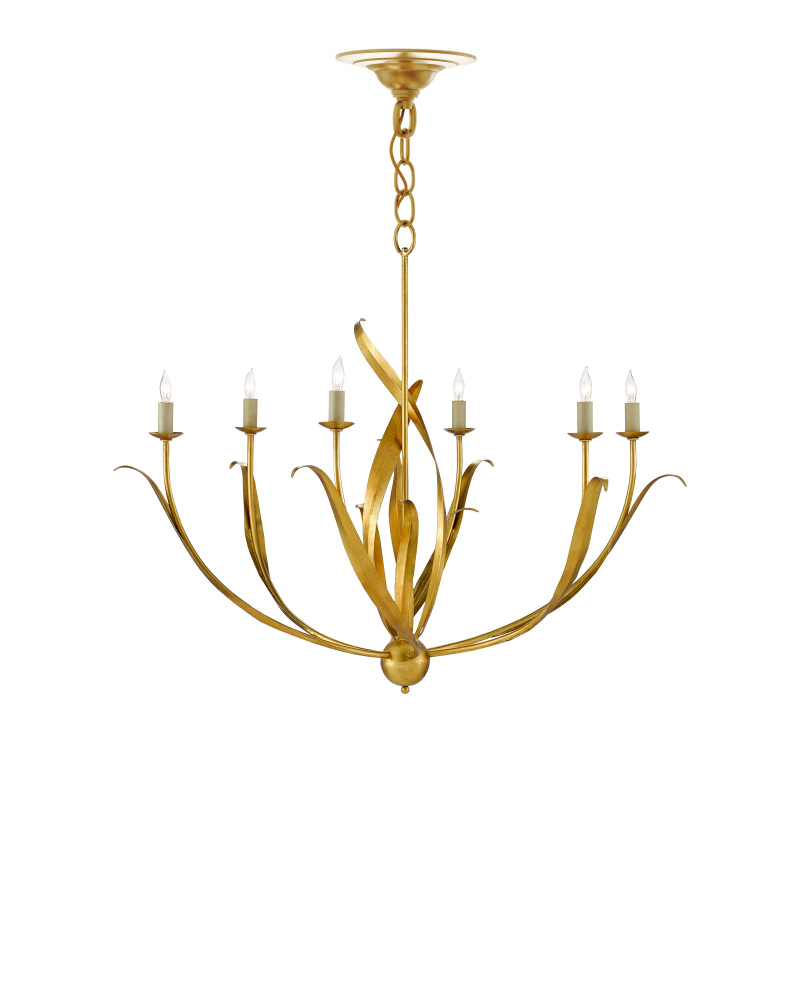 The swirl of long, slender leaves waving in a balmy summer breeze is called to mind when the lights of our Menefee Chandelier are switched on. Adding to the ruse that this is a light fixture meant only for summer is the antique gold leaf finish that makes the wrought iron gleam like a late evening sunset. But this graceful chandelier will be just as welcoming in the winter months effervescing above any space that could use a bit of warmth.