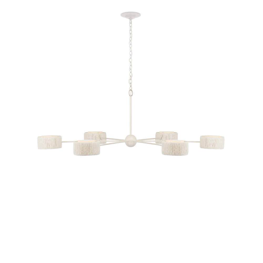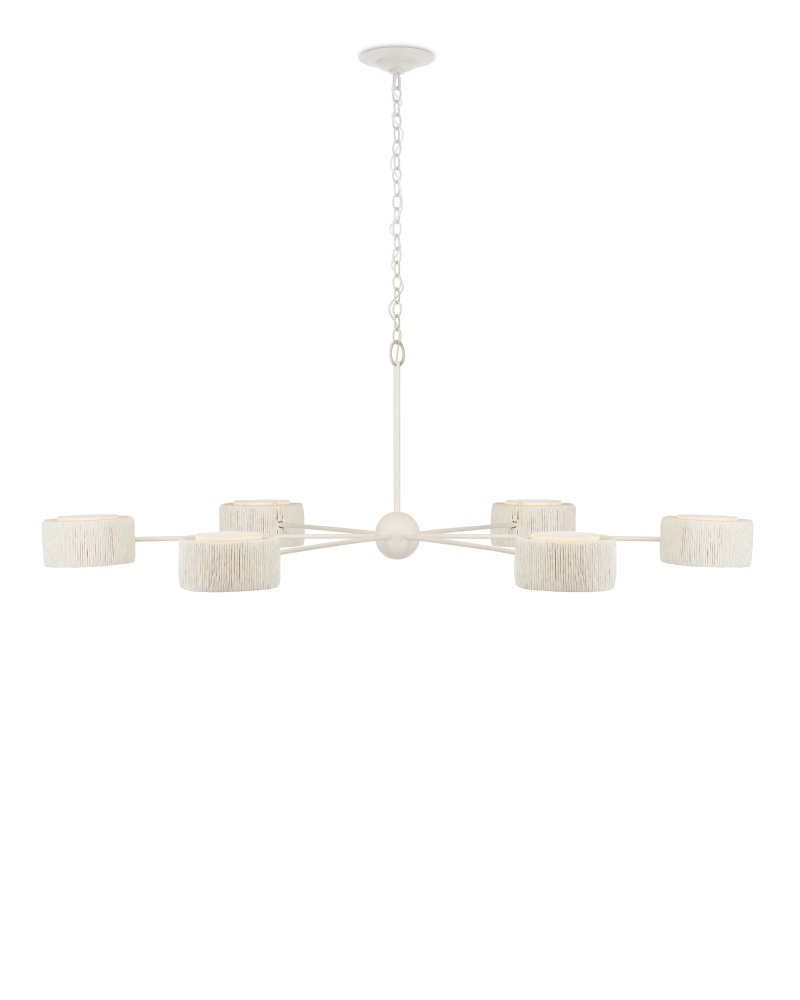 With shades made from recycled paper that has been twisted like braided hair, the Monreale Chandelier has a frame made of round tubing that telescopes out from a central cog. The paper is painted white, and the wrought iron frame has a vanilla finish that contributes to the lightness of this ivory chandelier. The shades are fitted with acrylic diffusers on the bottoms, and there are no transformers because the fixture has integrated LED technology. Adjustable from 24" to 93" with use of included chain/rod kit/cable. If your space calls for a longer drop, additional chain/rods/cable is available for purchase.