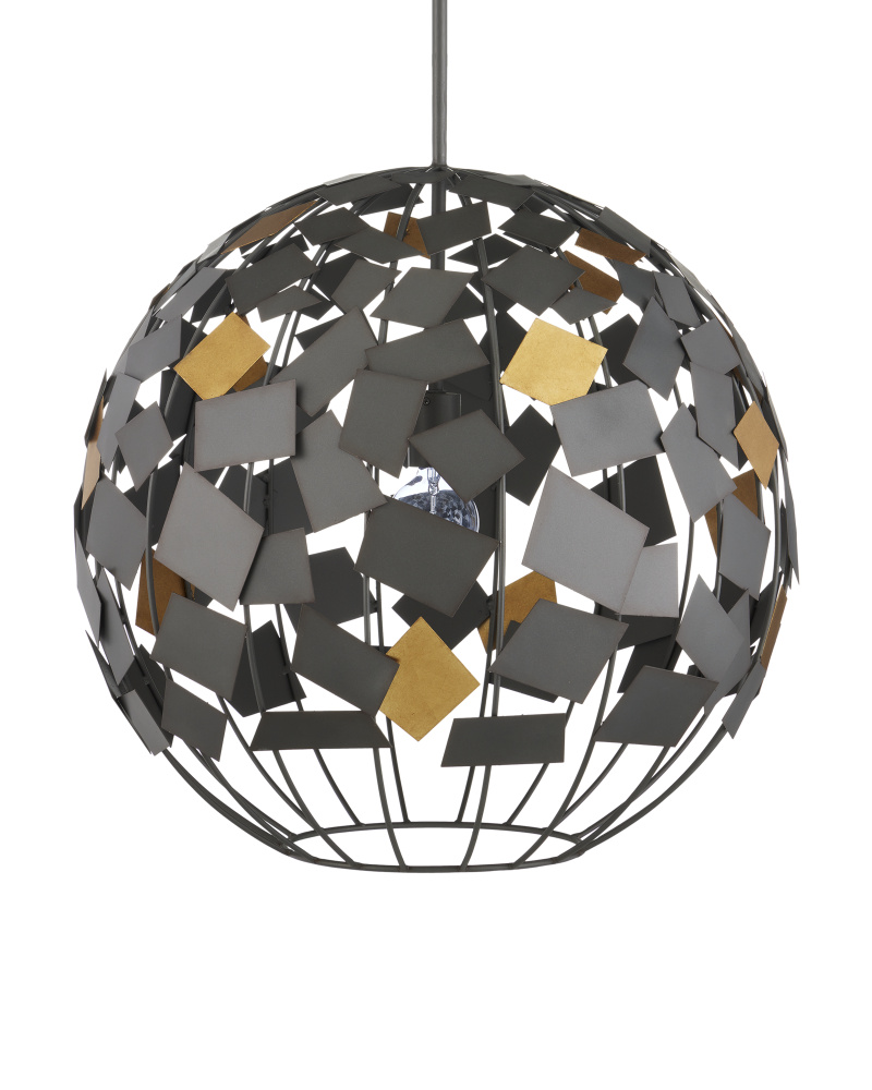 Space-inspired forms pepper Hiroshi Koshitaka’s lighting designs — orbs are nods to planets and spirals represent the swirling universes that spin in far-away realms. The Moon Night Gray & Gold Orb Chandelier is one of the former; the steel ribs in a Hiroshi Gray finish holding metal squares in the same finish intermingled with astutely placed gold confetti-like squares. This gray chandelier has an environmentally friendly slant, as the shapes welded to the frame are made from scrap metal that would have ended up in landfills. This move of staying mindful is infused in Koshitaka’s soulful outlook, which he manifests in each of his designs. Adjustable from 29.5" to 71.5" with use of included chain/rod kit/cable. If your space calls for a longer drop, additional chain/rods/cable is available for purchase.