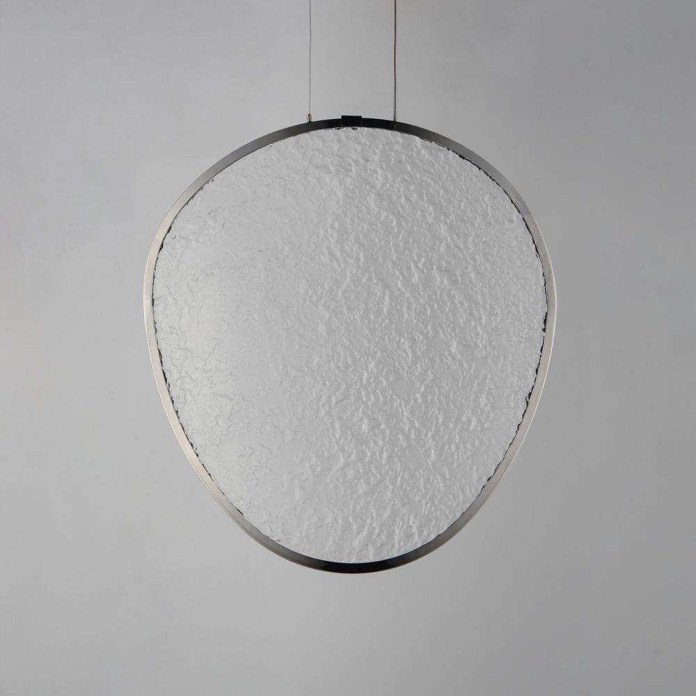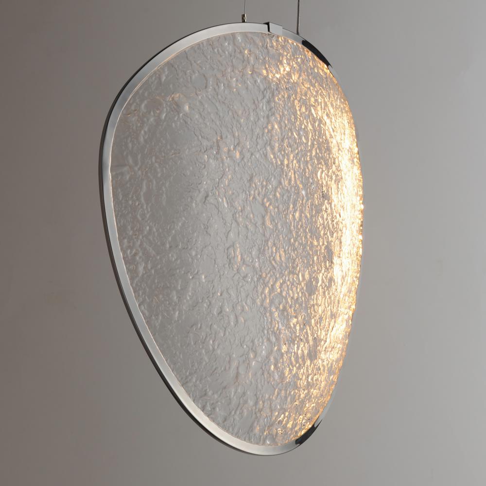 A triumph of scale, craft, and light, Moonscapes transforms celestial inspiration into a breathtaking installation. Monumental in form yet ethereal in presence, each irregularly shaped panel evokes the cratered terrain of the lunar surface with dramatic te