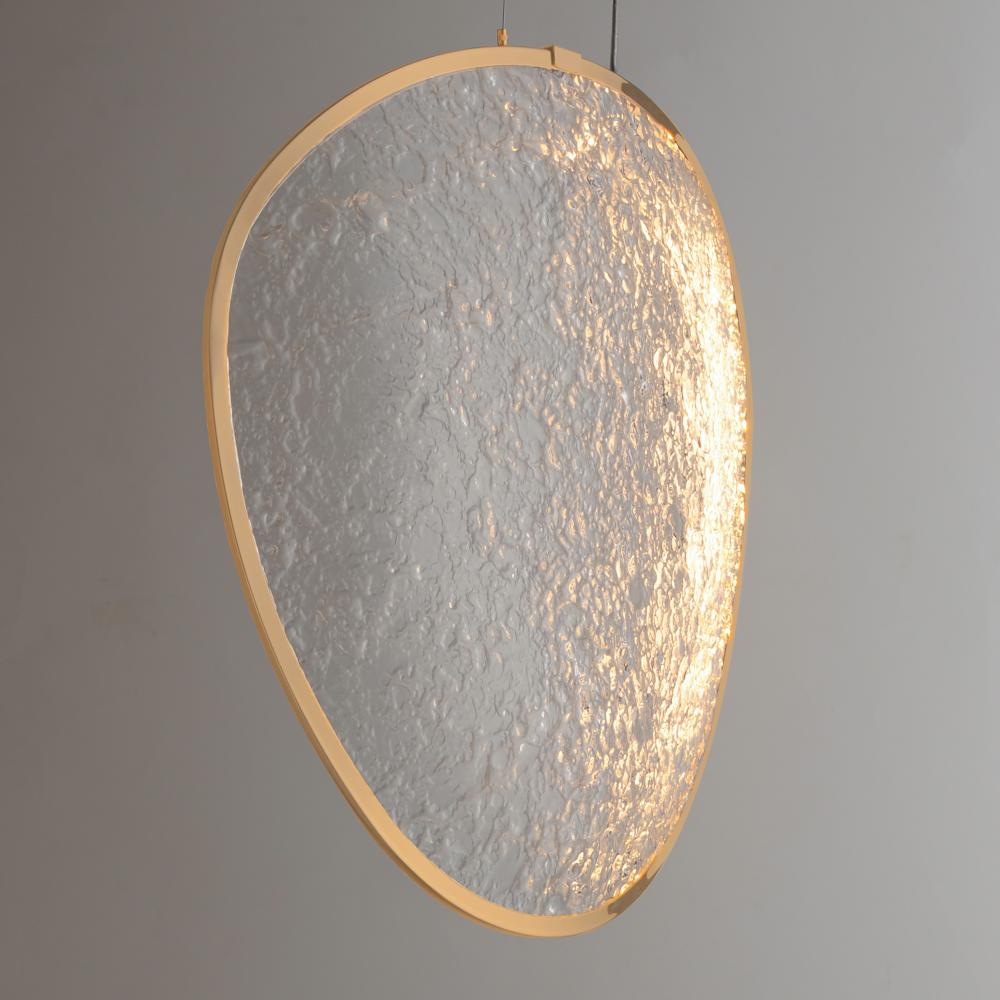 A triumph of scale, craft, and light, Moonscapes transforms celestial inspiration into a breathtaking installation. Monumental in form yet ethereal in presence, each irregularly shaped panel evokes the cratered terrain of the lunar surface with dramatic te