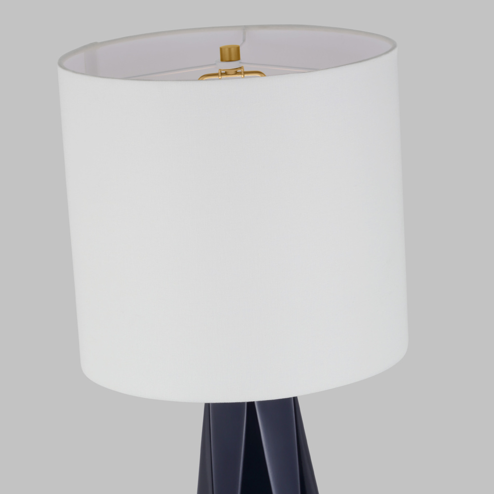 Rendered in a traditional teardrop shape but crafted of modern glass finishes, the Moresby lamps are classic with a modern twist. Topped with white cotton shades, these lamps will add bright illumination and excellent color to the room.