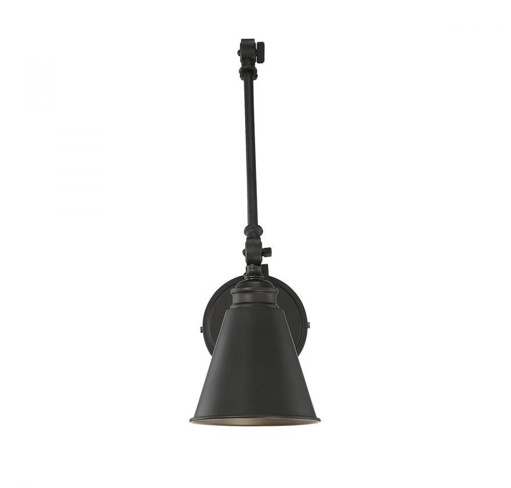 The Morland sconce provides classic, stylish wall lighting. Understated details highlight its functionality, the light arm is adjustable and there’s an on-off switch on the circular wall plate. You may hardwire this sconce or use with the included cord and plug. Adjustable arm sconces are incredibly versatile. Try using them at the bedside, taking the place of table lamps or as task lighting for living rooms and other spaces! The high-quality matte black finish looks terrific with other hardware in your home and the sconce design has classic charm that suits vintage, industrial, transitional and many other decor styles. The straight conical metal shade encloses one 60W standard size bulb and the shape directs light exactly where you want it.