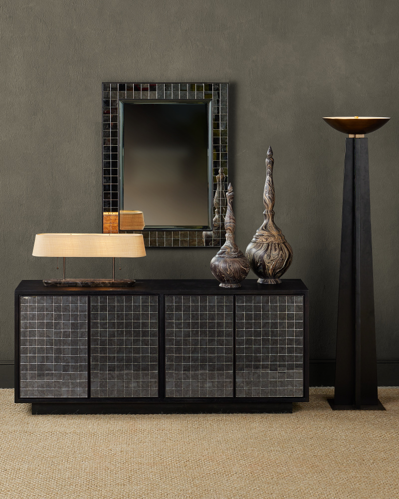 The Mosaico Rectangular Mirror blends texture, craftsmanship, and timeless style. Its frame holds a mosaic of antique mirror tiles that are individually hand-placed to fit seamlessly in the black wood form. With its generous proportions, it comes with hanging cleats that allow it to be hung vertically or horizontally.