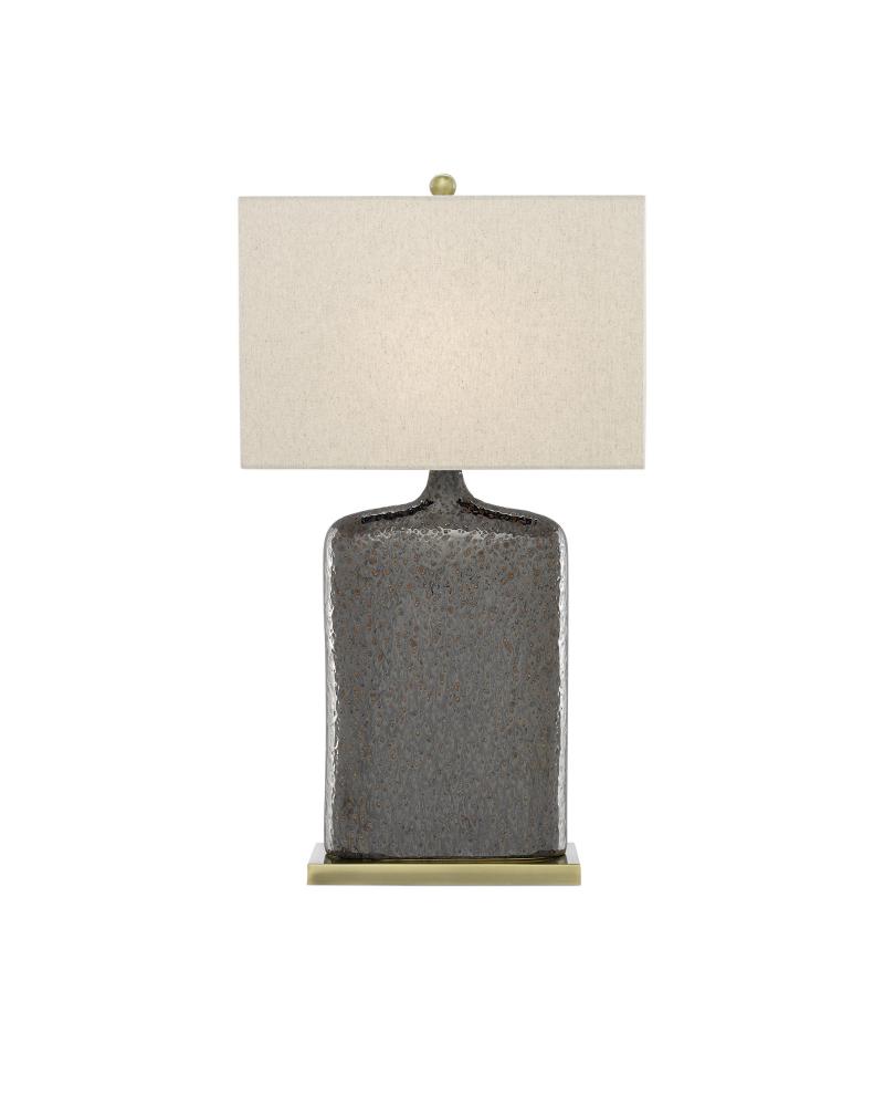 Like a lovely oversized flask of light, the rustic metallic bronze glaze on the Musing Table Lamp could cause unrestrained bouts of contemplation when the light is switched on. The natural pitting of the glaze adds interest to the distinctive shallow depth of its elongated body, as does the metal plinth-like base that has been treated to a bronze finish for resonance. The lamp is topped with a khaki linen shade to make it a composition you will enjoy contemplating.