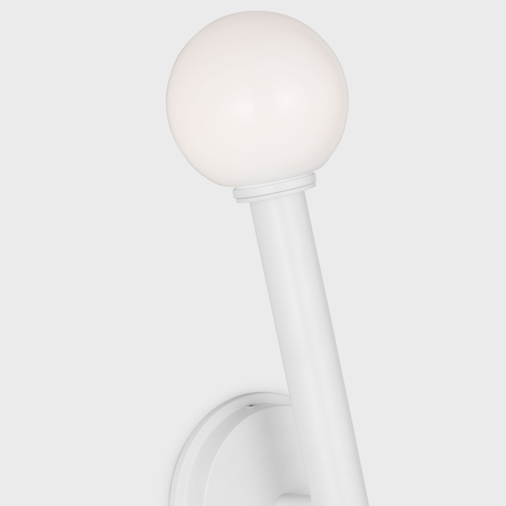 Nodes task, ceiling and wall lighting is minimal yet bold, highlighting Kelly's distinctive juxtaposition of mixed-materiality and curvilinear form. Light radiates from milk glass globes set against metal discs. All fixtures can be used or without the discs. The cast canopy is available in modern finishes. Hanging fixtures within this family feature black fabric cords, while pivot sconces can be cord and plug or hard wire.