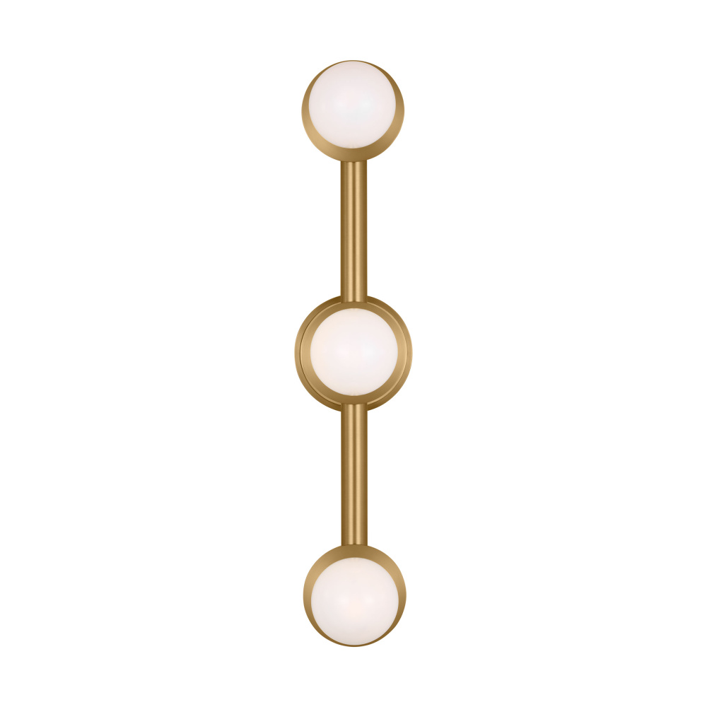 The Nodes task, ceiling, and wall lighting is minimal yet bold, highlighting Kelly Wearstler's distinctive juxtaposition of mixed-materiality and curvilinear form. Light radiates from milk glass globes set against metal discs. All fixtures can be used or without the discs. The cast canopy is available in Burnished Brass, Midnight Black or Polished Nickel. Hanging fixtures within this family feature black fabric cords, while pivot sconces can be cord and plug or hard wire.