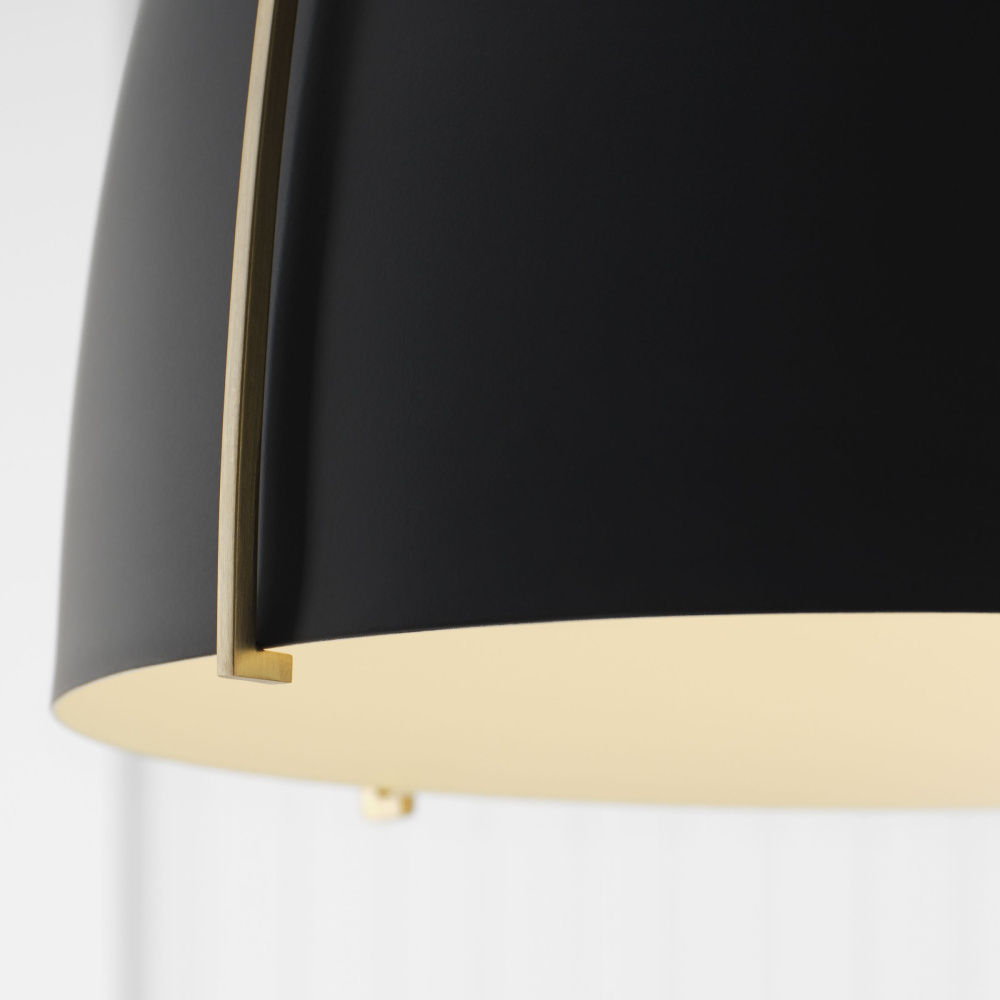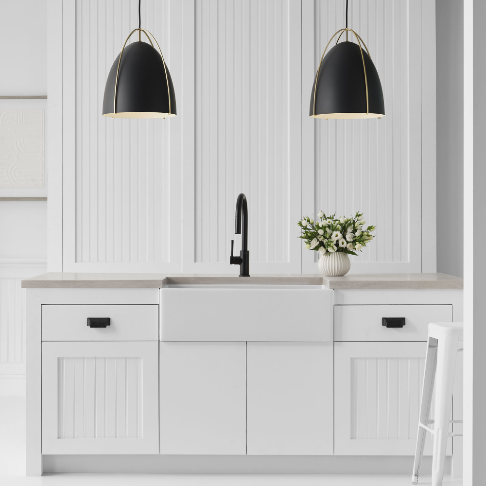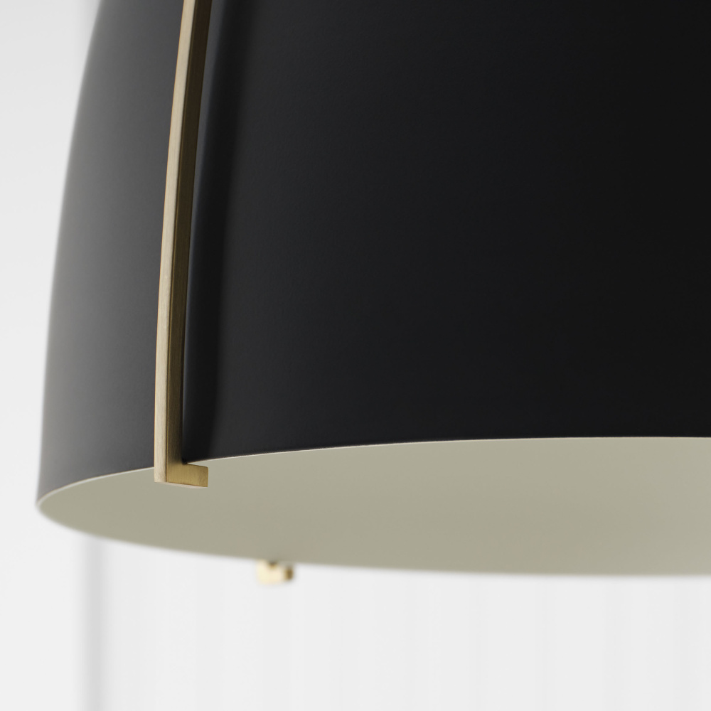 Contemporary, industrial fixture with sleek metal shade with complement any dining room, kitchen, or foyer