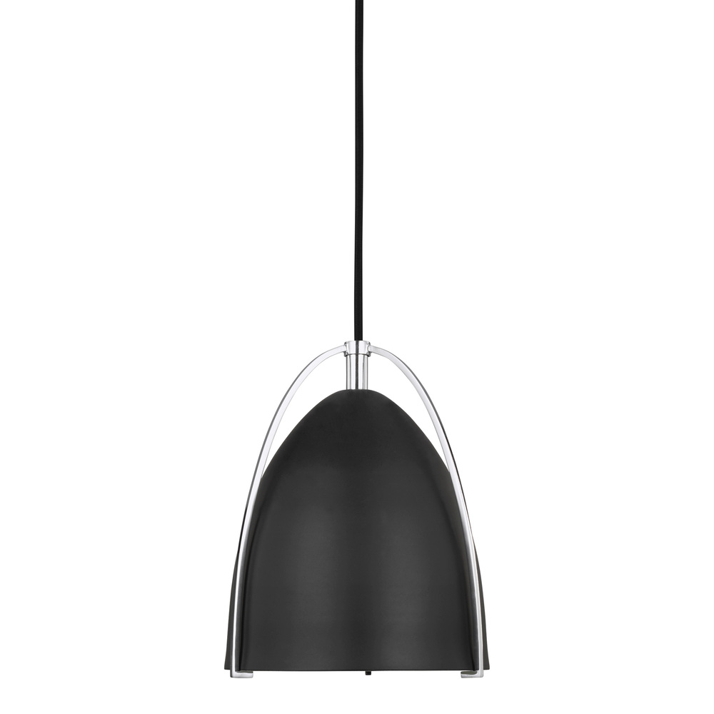 Contemporary, industrial fixture with sleek metal shade with complement any dining room, kitchen, or foyer