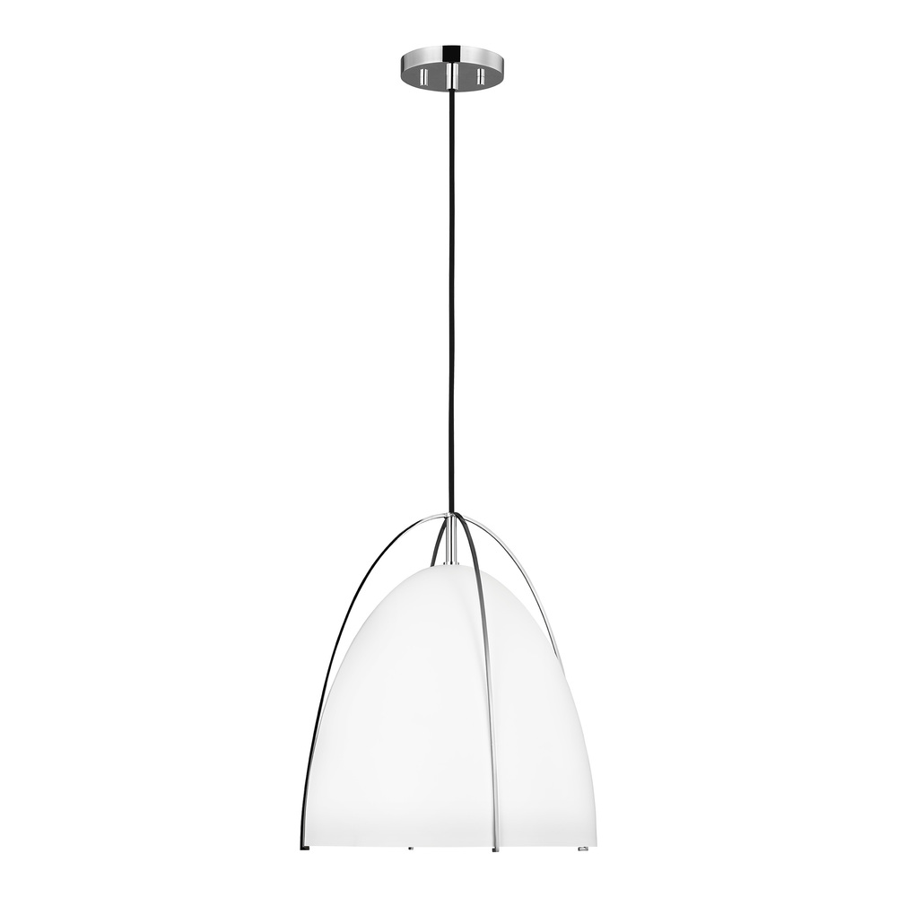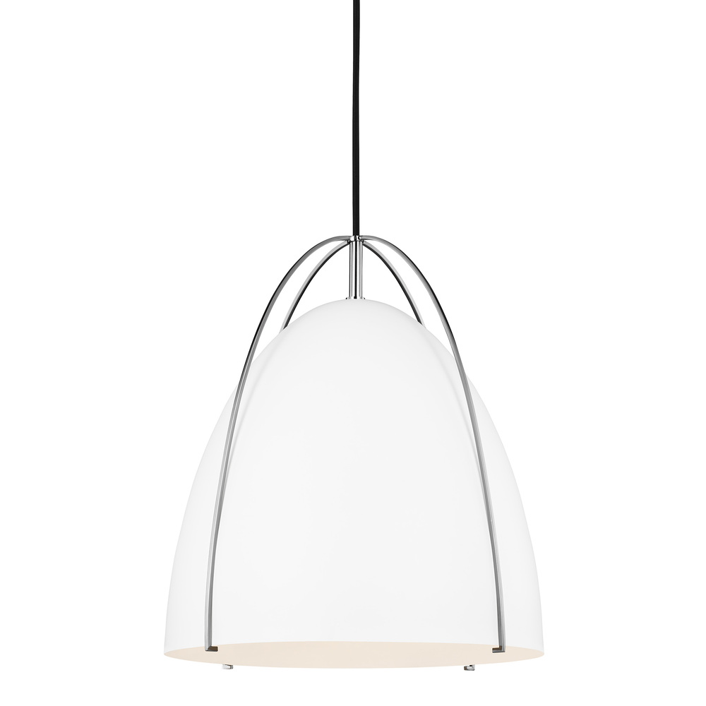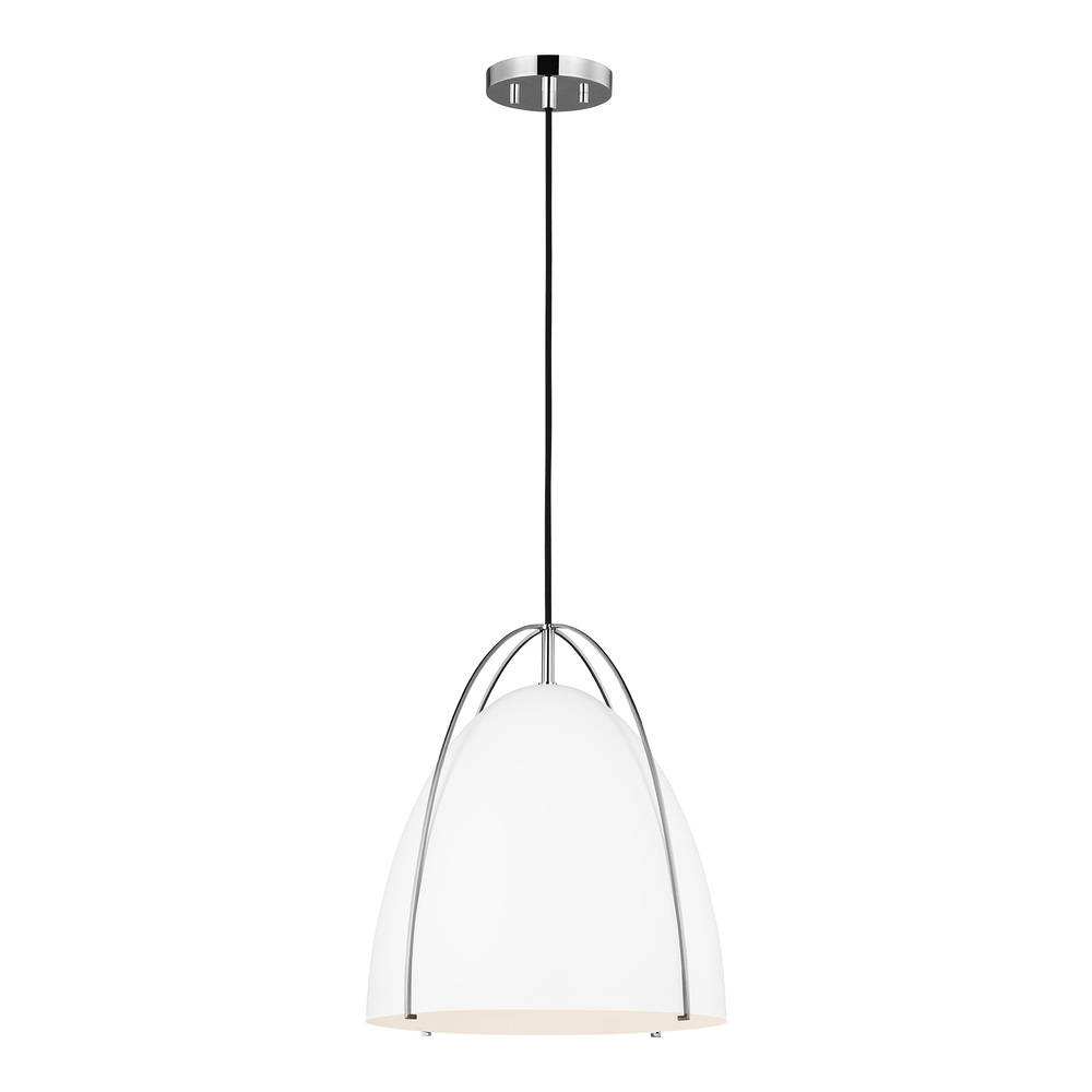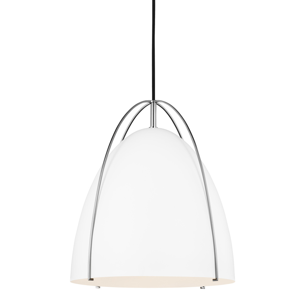 Contemporary, industrial fixture with sleek metal shade with complement any dining room, kitchen, or foyer