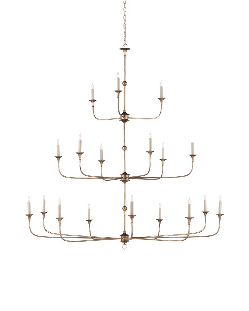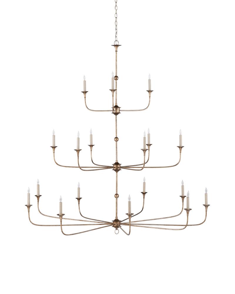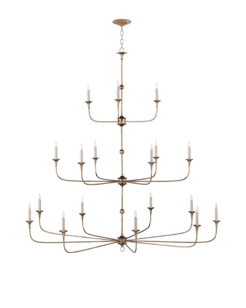 Design notes on the Nottaway Grande Bronze Chandelier include long arms that stretch gracefully from small cogs and a ring that ornaments its bottom-most point. The profile of the fixture has a lovely fluidity to it, and the Pyrite bronze finish adds textural interest to the bronze chandelier. This statuesque chandelier is decidedly in the traditional design category, , but its airiness allows it to function in a range of large rooms. Adjustable from 70" to 138" with use of included chain/rod kit/cable. If your space calls for a longer drop, additional chain/rods/cable is available for purchase.