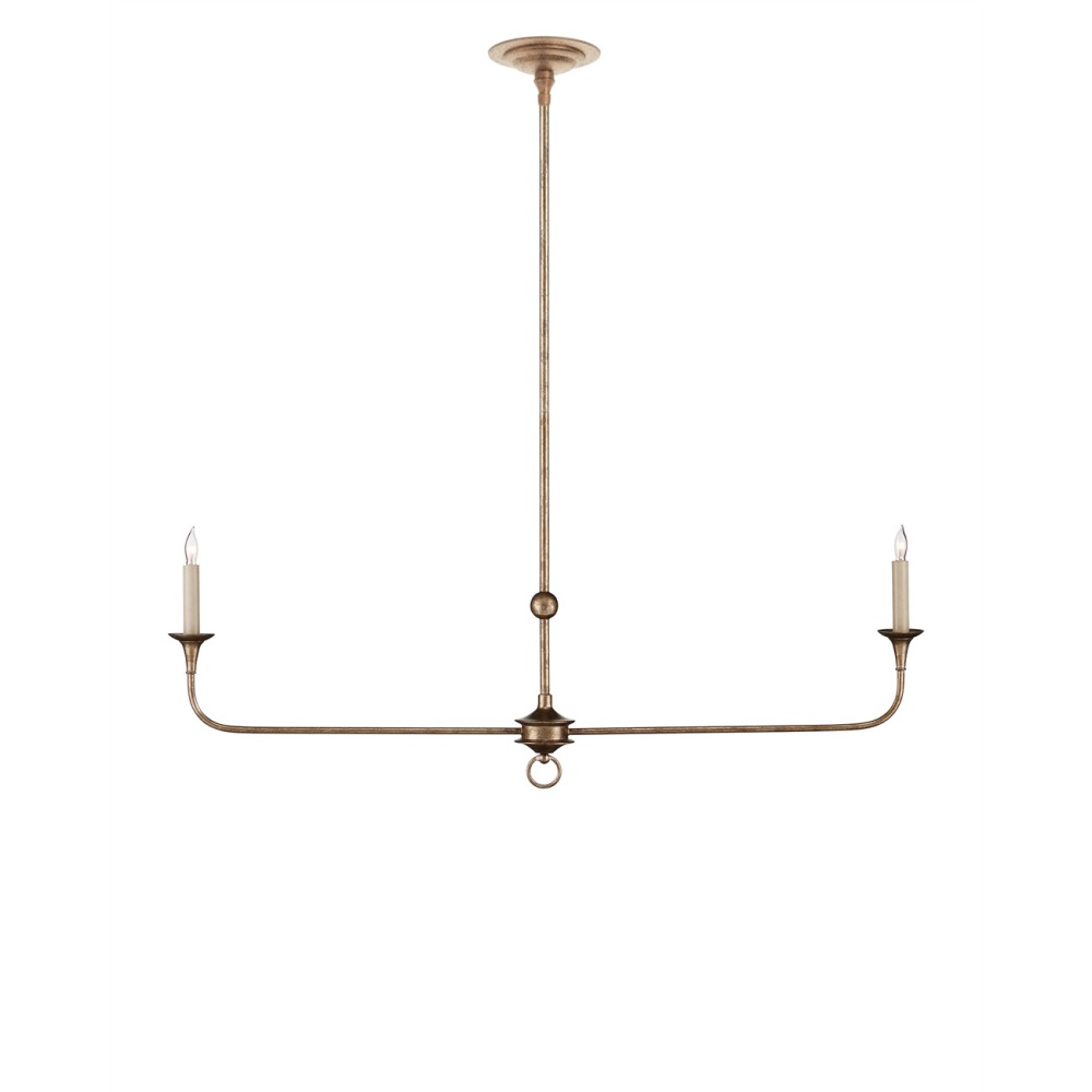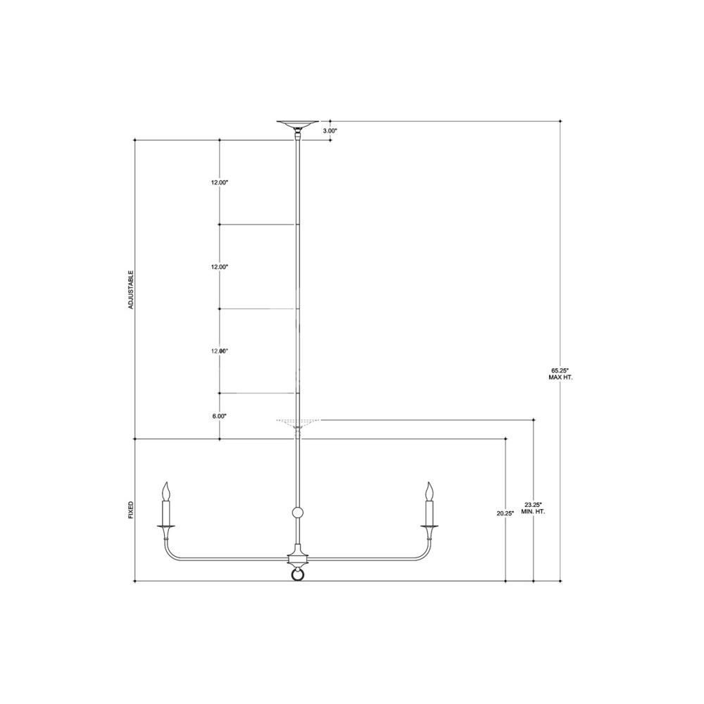 Design notes on the Nottaway Linear Bronze Chandelier include long arms that stretch gracefully from a small cog and a ring that ornaments its bottom-most point. The profile of the fixture has a lovely fluidity to it, and the Pyrite bronze finish adds textural interest to the bronze chandelier. The fact that the chandelier is hung from a rod rather than a chain modernizes this design, though it is still decidedly in the traditional design vernacular. Its shape makes it perfect for above kitchen islands and bars. Adjustable from 23.25" to 65.25" with use of included chain/rod kit/cable. If your space calls for a longer drop, additional chain/rods/cable is available for purchase.